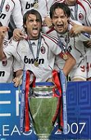 Паоло Мальдини и Филиппо Индзаги"Милан" в седьмой раз в своей истории завоевал титул сильнейшей команды Европы, обыграв в финале Лиги Чемпионов "Ливерпуль" со счетом 2:1. Англичане доминировали большую часть игрового времени, но воспользоваться своими шансами не сумели. "Милан", в свою очередь, продемонстрировал стопроцентную реализацию голевых моментов. В самой концовке первого тайма после удара со штрафного Андреа Пирло мяч рикошетом от Филиппо Индзаги в первый раз влетел в сетку ворот испанского вратаря Пепе Рейна. А на 82-й минуте бразилец Кака роскошной передачей вывел один на один все того же Индзаги, который очень хладнокровно оформил дубль. За минуту до конца основного времени "Ливерпуль" усилиями Дирка Кюйта отыграл один мяч, но на что-то большее у команды Рафаэля Бенитеса попросту не оставалось времени. Таким образом, "Милан", который перед началом сезона мог быть исключен из Лиги Чемпионов из-за скандала в серии А, взял убедительный реванш у "Ливерпуля" за поражение в финале Лиги Чемпионов двухлетней давности. Напомним, что тогда "Милан" выигрывал после первого тайма со счетом 3:0, но после перерыва "Ливерпуль" умудрился отыграться, а затем выиграл Лигу Чемпионов в серии послематчевых пенальти. Олимпийский стадион в Афинах становится счастливым для итальянского клуба. В 1994 году в финале Лиги Чемпионов "Милан" на этом же поле разгромил "Барселону" со счетом 4:0. Всего "Милан" играл в финале Кубка Чемпионов в одиннадцатый раз. До этого "россонери" становились победителями в 1963, 1969, 1989, 1990, 1994 и 2003 годах. В 1958, 1993, 1995 и 2005 годах миланцы оставались вторыми. Чаще в финале играл только мадридский "Реал" - 12 раз. Интересно, что в последних восьми финалах сыграл ветеран "Милана" Паоло Мальдини, который повторил рекорд полузащитника "Реала" Франциско Генто...