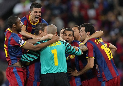 Вот и все. Очередной европейский сезон "приказал долго жить". Получилось это достойно. Если кто-то переживал по поводу качества финальной битвы (финал Лиги Европы немного испугал, подкачав в зрелищности), то сомнения были развеяны уже в самом дебюте. Сэр Алекс преподнес небольшой сюрприз сопернику в виде колоссального прессинга в течение первых десяти минут. Все это время "МЮ" зажимал неприятеля на его половине поля, давил, вжимал в штрафную. Однако "Барселона" выстояла даже без опасных моментов серьезных. А затем каталонцы занялись привычным делом, они перехватили контроль мяча и стали своими кружевными перепасовками подбираться к воротам ван дер Сара. Потом эти подходы становились острее, пошли опасные моменты, а потом согласно общей логике вещей счет был открыт. Это Педро откликнулся на шикарный пас Хави и поразил ближний угол ворот "Манчестера". Четко все было разыграно. Но "Манчестер" в первом тайме еще обладал силами для того, чтобы предпринять волевой рывок и изменить ситуацию. По рисунку матча ничего не поменялось, но в счете – довольно быстро. На 34-й минуте Руни и Гиггз разыграли голевую комбинацию...  |