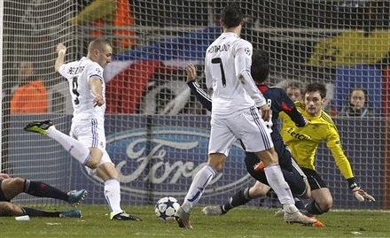 Роналду, тот в штрафную вернул на Карима, который протиснулся среди