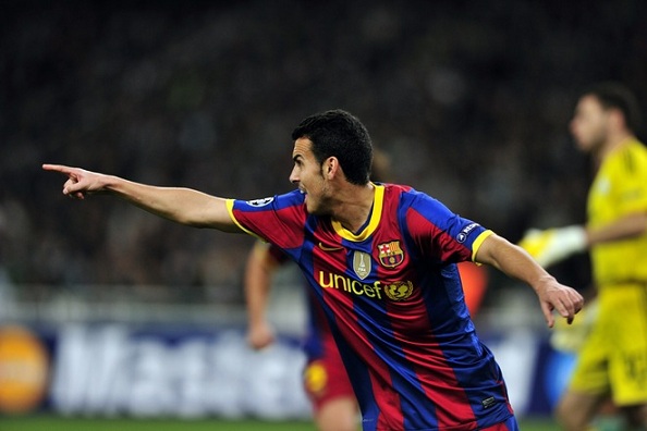 штрафного в исполнении Хави привела к тому, что мяч достался Педро Родригесу.