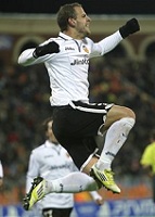 Впервые в этой лиге чемпионов команда Виктора Гончаренко оказалась в положении отыгрывающейся стороны. Тренер БАТЭ уже на пятидесятой минуте выпустил вместо отдавшего много сил в первой половине Лихтаровича Михаила Сивакова. Опасный момент, однако, пришёл снова от Родионова. Ворвался неутомимый Виталий в штрафную «Валенсии» с левого фланга и пробил, но Алвес ногой отразил этот удар. Великолепный момент упустили хозяева, и уже в ответной атаке валенсийцы их за это наказали. Изумительный пас верхом прошёл от Гуардадо на Сольдадо, и форвард в одно касание отправляет мяч в ворота. 0-2. Почти тут же положение БАТЭ чуть не становится критичным, но Гуардадо не пользуется великолепной возможностью, предоставленной Фегули. На пятьдесят пятой минуте Александр Павлов получил жёлтую карточку, а несколько минут спустя вместо него на поле вышел Мозолевский. Продолжал стадион «Динамо» гнать своих вперёд, но забила снова «Валенсия». И снова это сделал Сольдадо. Издевательским вышел этот гол. Тино Коста и Сольдадо, сыграв в стеночку, преодолели оборонительные редуты хозяев, и первый выдал пас прямо в ногу форварду, который легко оформил хет-трик. 0-3. Забив третий гол, «Валенсия» совершенно потеряла интерес к чужим воротам, а игра борисовчан и вовсе, к сожалению, распалсь на отдельные эпизоды. Вместо опытнейшего Альбельды выпускает на поле Банегу тренер «Валенсии», а Гончаренко бросает в бой Ренана Брессана. Ещё один шанс имел на семьдесят четвёртой минуте Сольдадо, но мимо ушёл мяч после его удара. Буквально через несколько мгновений вместо проведшего запоминающуюся игру испанца вышел Жонас. До конца не сдавались Глеб и Родионов, и даже возможность «размочить» счёт была у БАТЭ, но Брессан после паса от Родионова пробил сильно выше. Откровенно доигрывали матч гости, и едва ли можно было винить в этом теплолюбивых испанцев, для которых осенний Минск – неприятный климатический сюрприз. Не сдавались хозяева до самого конца, но забить борисовчанам не удалось. Будем думать, голы припасены для «Местальи»..