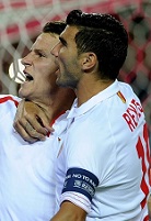 "Севилья" и "Боруссия" из Менгенхладбаха подошли к очному матчу в Лиге чемпионов, не имея побед в своих национальных первенствах. Однако этот матч показал, что кризис андалусийев всё-таки не так существенен. Хозяева доминировали в течение всего поединка и добились закономерной победы. Оборона же менхенгладбахцев порой напоминала проходной двор, а в атаке гости практически ничего не показали. Команда Унаи Эмери едва не вышла вперёд уже на 5-й минуте, когда Витоло угодил в штангу. До перерыва хозяева создали ещё несколько моментов, однако своими шансами не воспользовались. Начало же второго тайма получилось для "Севильи" просто сказочным. С интервалом в три минуты активный Витоло заработал два одиннадцатиметровых, первый из которых Кевин Гамейро уверенно реализовал, а во втором случае попал в перекладину. Однако и это не сподвигло гостей прибавить. Напротив, преимущество "Севильи" стало ещё более ощутимым, чем в первом тайме, и вскоре Гамейро заработал уже третий (!) одиннадцатиметровый за двадцать минут. Который реализовал Эвер Банега. Лишь за семь минут до конца основного времени на поле появился Евгений Коноплянка. И дебют украинца в Лиге чемпионов получился превосходным! Коноплянка уже через минуту провёл третий мяч красно-белых, оформив тем самым разгром. "Севилья" провела, без сомнения, свой пока лучший матч в сезоне и благодаря крупной победе вышла в лидеры группы D. "Боруссии" же с такой игрой сложно будет претендовать даже на третью строчку - менхенгладбахцы пока являются лишь тенью самих себя.