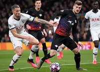 В дальнейшем Ло Чельсо пришлось фолить на убегающем вперед Забитцере, а сам пострадавший потом нарушает правила на Бергвейне. В обоих случаях главным судьей Чакыром была показана желтая карточка провинившимся спортсменам. Тогда как в ситуации с Нкунку, которого сбили, свисток турецкого арбитра промолчал. Пришла очередь приезжих, тем временем, подавать угловой. Получилось у них это не хуже, чем у соперника. Шик мяч головой мимо Льориса отправил, но точности не хватило, не влетел мяч в цель. У гостей Клостерманн мяч выносил, отлично работал в обороне, а вот у «шпор» защитники немного успокоились после стартового натиска со стороны немцев, но все равно выглядели не очень уверенно. Страсти улеглись, скорости поубавились, можно было перевести дух, как футболистам, так и зрителям. Алдервейрелд отобрал мяч у Лаймера, потому первого из вышеназванных вынужденно срубил Вернер, дабы чего опасного не получилось. Тимо увидел перед собой «желтый свет». Во благо действовали форвард «быков», вероятно, правильное решение он принял. Шик же продолжал первым номером играть, вот уже мяч к левому краю чужой штрафной отправил на все того же Вернера, который пробил, но, откровенно говоря, не лучшим образом. Льорис справился, парировал удар одного из лучших нападающих немецкой Бундеслиги. Мукиеле ногу подвернул, возникла пауза, но все обошлось с Норди. Интересных эпизодов больше не было в первом тайме, одна минута компенсированного времени быстро истекла. Голов не забили, на перерыв ушли при нулевой ничьей. И, надо сказать, все шансы на победу были у гостей. «Тоттенхэм» доверия совершенно не внушал, игра у лондонцев не клеилась.