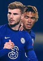 Главные обидчики «Краснодара» Кай Хаверц и Кристиан Пулишич пропускали матч с «Ренном», поэтому Фрэнк Лэмпард применил схему с двумя форвардами, выпустив с первых минут Абрахама и Вернера. За креатив отвечали Маунт и Зиеш, а за опорную зону Канте и Жоржиньо. У гостей отсутствовал Эдуардо Камавинга, без которого можно выделить разве что Мартина Террье. Собственно, о французах больше и не вспоминали. «Челси» солидно начал матч, придавив соперников серией атак. Постепенно наращивали давление «синие», подходили всё опаснее и опаснее, отличившись на десятой минуте. Мгновением ранее Хаким Зиеш мог забить и с игры, но замыкая прострел Риса Джеймса в створ ворот не попал – взял чуть выше створа. А далее случился финт Вернера. Тимо принял кросс Маунта, грудью скинул мяч себе на ход, а затем протолкнул сферу между ног Далберту. Эстеван по инерции врезался в Тимо Вернера, свалив того в штрафной площади. Жёлтая карточка и пенальти. Альфред Гомис играл по удару, прыгнул за мячом, пущенным Вернером в левый угол, но не достал – 1:0. Довольно буднично открыл счёт «Челси» и это успокоило команду Фрэнка Лэмпарда.