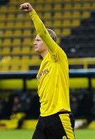 Завладела «Боруссия» мячом, почти его и не отпускала, ничего удивительного. На первых минутах неплохой прострел уже получился, Холанн пробил, чуть не попав в цель, рядом с правой стойкой «снаряд» просвистел. Ответили гости забросом мяча от Дели, однако там получилось довольно сильно, потому спокойной разрядил обстановку Бюрки. Шмельцер и Рейнир вне состава, остальные, кто выбывал, постепенно восстановились, так что у «шмелей» все налаживается, да и настроение у них прекрасное, сразу видно по действиям на поле. Команда ведь сродни живому организму, когда по всем фронтам становится хорошо, весь коллектив действует свежо, задорно и на радость болельщикам. Геррейру, традиционно, здорово отрабатывал в обороне, Санчо с линии штрафной неплохо пробивал, да только вот там «снаряд» угодил в кого-то из оборонцев, потому траектория полета изменилась, потенциально опасный момент превратился в полет мяча за лицевую линию. Но постепенно сказывалось преимущество хозяев поля, их напор был очень силен, что привело к взятию ворот оппонента на 18-й минуте встречи. Отличная передача от Санчо получилась к Эрлингу, скандинав оказался на опасном расстоянии с вратарем, после чего разрядил в ближний угол, срикошетил мяч о штангу, после чего оказался в сетке – 1:0 в пользу хозяев поля! Чуть ослабила хватку «Боруссия» потом, однако норвежец по-прежнему выматывал футболистов команды соперника. Рейна на его фоне смотрелся бледнее, но тоже старался, да и Джейдон, похоже, наконец в себя приходит после непростого для себя лично старта сезона.