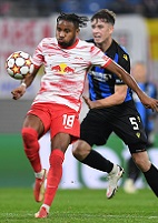 Со стартового свистка Славко Винчича футболисты “Брюгге” разыграли мяч с центра поля. Игроки обеих команд предстали на поле “Ред Булл Арены” в домашних комплектах формы – немцы действовали в бело-красном, а бельгийцы предстали в клубных чёрно-синих цветах. Для “Лейпцига” отчётный поединок был важен ещё и из-за того, что вице-чемпион Бундеслиги играл с болельщиками на трибунах в рамках ЛЧ впервые с марта 2020 года! Этим вечером на трибунах в восточной Германии аншлага не могло быть, однако 23,5 тысячи фанатов – внушительная аудитория, чтобы зарядить хозяев поля. Без раскачки начали обе команды, причём острее и нацеленнее на ворота поначалу были гости. В первой же атаке Матс Ритс от ближней бровки бросил мяч в полуфланг на ход де Кетеларе, и Симакан в безупречном подкате выбил сферу за пределы поля. Камаль Сова от правого углового флага разыграл стандарт накоротке с партнёрами, и немцы без труда нейтрализовали угрозу воротам Гулачи. Вскоре мяч оказался в ногах уже у Симона Миньоле, после перевода которого направо Клостерманн в рамках правил накрыл игрока “Брюгге” и адресовал мяч Собослаи. Доминик с разворота передал сферу открывшемуся на линии офсайда Форсбергу, и “десятка” саксонцев продолжил движение мяча в центр. Кристофер Нкунку оставил не у дел Баланту и Соболя и реализовал выход 1x1, пробив так, что мяч полетел под руку Миньоле, - 1:0! Ещё до исхода стартовой 10-минутки фландрийцы упустили два шанса восстановить статус-кво. Сначала Гулачи ногой парировал мяч в сторону после выстрела де Кетеларе из “вне игры”, а в следующей атаке подопечных Клемана мобильный де Кетеларе оказался уже слева в штрафной “быков”, откуда 90-й номер бельгийцев прострелил под удар Ванакену – Гулачи совершил сейв после хлёсткого выстрела капитана “Брюгге” в ближний угол!