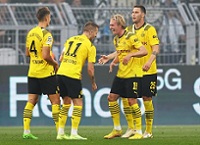 На воротах у дортмундцев стоял Майер, т.к. Кобель получил травму на тренировке (пожелаем ему здоровья). Оставалось вопросом, не стало ли бы это проблемой для фаворита? Тем временем, Зека уже разрядил по цели на первых минутах поединка, но значительно мимо цели. Менье потом неплохо навесил в чужую штрафную, да и другие «шмели» стали подтягиваться. Пошел прострел к правому краю, получилось у Брандта прямо на Модеста отправить «снаряд», Антони зарядил выше перекладины. На экс-кельновца все забрасывали мяч, чтобы он играл на «втором этаже», видать, какая-то тренерская задумка, прямо отчетливо это читалось в действиях футболистов Терзича. Фальк зарядил по ногам Азару, бельгиец не смог продолжить бой, а потому наставник заменил его вынужденно на Рейну. Хочолава очень грубо сыграл, сражаясь с Модестом за мяч, желтая карточка была показана французским рефери Летесье.