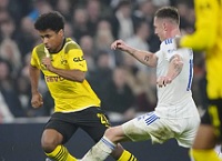 А на 23-й минуте «шмели» открыли счёт. Пасслак на правом фланге на скорости ушёл от Йенсена и от лицевой закинул сферу на дальний край штрафной на одинокого Азара, и тот вторым касанием, положив корпус, пробил слёту, мяч после рикошетов от Дикса и Вавро оказался в «сетке» - 0:1. Отличившись, гости попытались взять контроль над мячом, однако периодически датчанам удавалось убегать вперёд. На 29-й минуте Классон на правом краю штрафной подхватил мяч и пробил с угла вратарской, но Кобель, выскочив ему навстречу, спас свою команду. Затем Дарами заработал стандарт на левом фланге, подача Серенсена получилась опасной, однако до удара по воротам дело так и не дошло. Затем игра ненадолго прервалась из-за выбежавшего на поле болельщика, а после небольшой паузы картина особо не поменялась. «Копенгаген» продолжал охотно атаковать через левый фланг. На 36-й минуте Дарами снова совершил сольный проход, однако его прострел до одноклубников не дошёл. Датчане активно искали пути к воротам Кобеля. У дортмундцев не получалось успокоить игру. И на 41-й минуте счёт стал равным. Харальдссон сработал в прессинге, подхватил мяч на левом фланге, затем оставил сферу Классону, Виктор вернул игровой снаряд Хакону-Ранару, и тот с края штрафной пробил низом в дальний нижний угол – 1:1. Хозяева были не прочь додавить соперника. На 43-й минуте Бардагджи отметился ударом, но угодил в защитника. Перед самым перерывом Классон, развернувшись в чужой штрафной, пробил по воротам, однако Кобель проблем в этом эпизоде не испытал. А затем Модест схлопотал жёлтую карточку за фол на Диксе в центре поля. Таким образом, первый тайм победителя не выявил.
