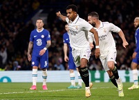 В перерыве Анчелотти разменял Алабу на Рюдигера. Едва игра возобновилась, как «Реал» заработал штрафной слева, но после подачи хозяева отбились, как и на угловом. Вскоре Джеймс повис на карточке за фол на Камавинге. «Челси» продолжал транжирить моменты. Заброс в штрафную, скидка Галлахера на Канте, который с нескольких метров в касание влупил в Милитао. Следом Милитао уронил Чалобу, но вторую карточку за фол у угла штрафной судья не рискнул дать. После стандарта Фернандес с подбора пробил рядом со штангой. И еще один каассный момент у «Челси», и вроде здорово проскочил защитников на финтах Хаверц, но его удар низом проблем Куртуа не доставил. А дальше «Реал» наказал. Контратака, умчался справа Родриго, уйдя от опрометчивого подката Чалобы, и выдал прострел вдоль ворот. Бензема в центре пролетел мимо, но на дальней штанге подобрал мяч Виисиус, который не пожадничал, а выкатил в центр на Родриго, расстрелявшего ворота с нескольких метров. На экваторе тайма обменялись моментами команды. Фернандес пробил плотно в ближний угол, но легко справился Куртуа. В ответной атаке Бензема получил мяч в хорошей позиции от Родриго, но ткнул мяч в руки Кепе. Лэмпард сделал тройную замену, выпустив Мудрика, Стерлинга и Феликса вместо Галлахера, Кукурельи и Фернандеса. За двадцать минут до конца Хаверц решил упасть в штрафной, но не было там контакта с Модричем. VAR быстро проверил эпизод. Анчелотти же снял Бензема, выпустив Чуамени. Родриго перешел в центр атаки, Вальверде поднялся на фланг. «Челси» Пытался атаковать, но стихийно и судорожно. На заключительную треть тайма тренеры обменялись заменами. Себальос сменил Крооса, а вместо Хаверца появился Маунт. Тут же падал Винисиус на входе в штрафную, но арбитра не впечатлил. «Реал» играл все спокойнее, уверенно контролируя мяч. А потом «сливочные» взорвались. Чуамени вырезал вертикальный длинный пас, Себальос пропустил на Винисиуса, который отыграл на Вальверде. А уругваец не стал жадничать и выложил на пустые ворота Родриго. Издевательство над обороной «Челси». Тут же Начо сменил Карвахаля, а вместо Родриго появился Асенсио. Еще один момент имел «Челси» - накрыл удар Милитао, а после подбора низом крутил в створ Мудрик – легчайший удар для Куртуа. ЗА пять минут до конца было близко к третьему голу. Асенсио выдал пас на рывок Винисииусу, который выскочил один на один, но сокративший угол обстрела Кепа спас. Тут же Маунт кинул в прорыв Мудрика, который высокчл один на один и хлестко пробил мимо ближней штанги. В любом случае был офсайд. Раздосадованный Мудрик через минуту въехал в подкате в Модрича, получив предупреждение. Даже компенсированное время прошло с перевесом «Реала». Судья свистнул после удара Себальоса с угла штрафной по позиции Кепы.
