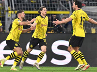 На этот раз Терзич с первых минут выпустил Брандта, оставив Нмечу на скамейке. Симеоне в отсутствие Лино отправил на левый фланг Аспиликуэту, а третьим в центр обороны вышел восстановившийся Эрмосо. Команды начали без раскачки. Уже на третьей минуте Адейеми прорвался по флангу и выдал прострел вдоль ворот, который замыкал с нескольких метров Забитцер, однако успел накрыть его удар из убойной позиции Аспиликуэта. Рюэрсон пробивал во второй волне атаки, но вновь накрыли – только угловой. После его подачи «Атлетико» ответил ещё более опасным выпадом – Витель закинул мяч вперед Гризманну, который скинул себе за спину на рывок Морате. Альваро убежал с середины поля один на один с Кобелем, подсек мяч над ним, но вышло рядом со штангой. Минутой позже Де Пауль отметился плотным ударом с линии штрафной по позиции Кобеля, уверенно поймавшего мяч. После бодрого старта игра чуть успокоилась, но уже к исходу трети тайма дортмундцы вновь наработали на опасный момент. Фюллькруг выиграл воздух после углового и бил с нескольких метров, но Облак справился, спровадив мяч обратно за лицевую. Теперь разыграли хозяева от флажка, и Брандт щелкнул с острого угла. Снова Облак сыграл надежно, и третий раз отправились «шмели» исполнять угловой. Фюллькруг выиграл воздух, сбросив мяч под удар Адейеми, который сильно пробил по позиции Облака. В целом «Боруссия» смотрелась более цельно, лучше контролировала мяч и регулярно провоцировала ошибки гостей при владении. Примерно по тому же сценарию, что в Мадриде, шло дело, но теперь с перевесом немецкого клуба. В редком выпаде на исходе получаса игрового времени Мората оказался на ударной позиции, но успел накрыть его Шлоттербек. Ответную атаку сорвал ценой «горчичника» Аспиликуэта. А пару минут спустя после выноса Молины «Боруссия» выиграла подбор, покатала мяч в центре, расставившись поудобнее, и Хуммельс вырезал шикарный заброс в штрафную. Брандт подработал, прокинул мимо Витселя и с острого угла прошил Облака. «Боруссия» не сбавляла оборотов. С дальним ударом Джана Облак справился, но все же через несколько минут после первого гола «шмели» в раздевалку забили второй. После аута опять же подготовили пространство сами себе хозяева серией передач накоротке, и рванул туда Забитцер, приняв и освободив свою зону Маатсену, которому и вернул мяч. Иан пробросил и хлестким ударом уложил мяч с острого угла в дальнюю «шестерку». Рюэрсон успел перед уходом на перерыв получить карточку за фол на Аспиликуэте, а уже в компенсированное время и Эрмосо схватил «горчичник» за снос Адейеми.