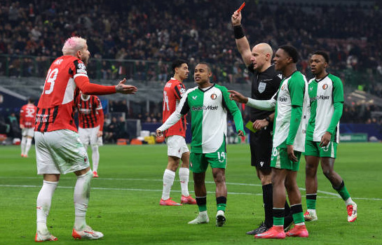 Ответный стыковой матч против «Фейеноорда» «Милан» начал агрессивно и сумел забить быстрый гол – Сантьяго Хименес поразил ворота своей бывшей команды после скидки Тиава. Миланцы и не думали останавливаться на достигнутом. Рейндерс запустил мяч выше перекладины после передачи Уокера. Чуть позже Сантьяго Хименес выступил в роли ассистента, забросив мяч на Феликса, который немного не попал в створ. Эрнандес мог развить успех своей команды, сыграв на добивании после того, как Велленройтер отбил удар Феликса, но на пути мяча встала штанга. В концовке тайма Рид упустил в штрафной Леау, который бил с нескольких метров – Велленройтер спас свою команду. Начало второго тайма неожиданно изменило расклад сил в этой паре. Эрнандес откровенно симулировал, пытаясь заработать пенальти, за что получил от арбитра жёлтую карточку, оказавшуюся для игрока «Милана» второй – удаление. Роттердамцы завладели инициативой и всё чаще угрожали воротам Меньяна. Буэно с левого фланга навесил точно на голову едва появившегося Каррансы, который вколотил мяч в ворота. Миланцам, игравшим в меньшинстве, не оставалось ничего другого, кроме как идти вперёд, рискуя нарваться на контратаку – Пайшао едва не убежал к воротам Меньяна. Но «Фейеноорд» добился ничейного исхода и прошёл дальше. ![]() Фото - Getty Images. Предыстория В первом стыковом матче Лиги чемпионов «Милан» уступил в Роттердаме, показав довольно невзрачную игру. В таком результате миланцы, забравшие у своего соперника лучшего бомбардира, винить могут только самих себя. Конечно, вмешались в игру и погодные условия, помешавшие Меньяну отбить мяч после удара Пайшао. Хотя до этого подопечные Сержиу Консейсау хорошо проявляли себя в матчах на вылет, выйдя в полуфинал Кубка Италии и победив в Суперкубке страны. Да и в чемпионате дела у «россонери» складывались неплохо: команда с января потерпела лишь одно поражение, уступив «Ювентусу» (0:2). Так что говорить о кризисе пока не приходится. Новобранец Сантьяго Хименес отметился результативными действиями во всех 3-х матчах Серии А, однако в Нидерландах он игру провалил. Возможно, форвард просто не справился с давлением трибун и бывшими партнёрами, которые знают его сильные стороны. Самым активным у гостей был другой новичок «Милана» – португальский легионер Жоау Феликс. В списке травмированных – защитники Алессандро Флоренци и Эмерсон, а также полузащитник Рубен Лофтус-Чик. Руководство «Фейеноорда» уволило главного тренера Брайана Приске прямо перед матчем Лиги чемпионов, однако команда сумела одолеть «Милан». Кроме того, роттердамцы создали ещё несколько неплохих моментов для взятия ворот. Для отставки датского тренера имелся повод: при нём у команды была серия из 3-х поражений и разгром от французского «Лилля» (1:6). Также коллектив уступил всем главным конкурентам в чемпионате Нидерландов – «Утрехту» (1:2), «Аяксу» (1:2) и дважды ПСВ (0:3 и 0:2). «Фейеноорду» необходимо выдержать стартовое давление соперника и сыграть на контратаках, ведь «Милан» 20% мячей в Лиге чемпионов пропустил именно после встречных атак. У команды из Роттердама имеются серьёзные кадровые проблемы. В списке травмированных – голкипер Джастин Бейлов, защитники Гернот Траунер, Барт Ниувкооп, Джордан Лотомба, полузащитники Рамиз Зерруки, Квинтен Тимбер, Хван Ин Бом и Крис-Кевин Надже, а также 