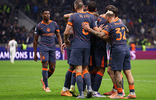 Очень достойный матч провёл в Милане «Кайрат». Алматинцы продемонстрировали совсем другую игру, нежели в недавнем поединке с «Реалом», и действовали смело, не садясь глубоко в оборону. Очевидно, «Кайрат» набирается опыта в Лиге чемпионов и растёт на глазах. Команда Рафаэля Уразбахтина была близка к тому, чтобы сыграть «на ноль» в первом тайме. В дебюте встречи гостям пришлось очень непросто, но они выстояли и сами стали искать шансы впереди. Незадолго до перерыва едва не отличился Дастан Сатпаев, но мяч после его удара и рикошета от соперника попал в перекладину. И уже через минуту «Интер» открыл счёт стараниями Лаутаро Мартинеса. В этом эпизоде оборона гостей сыграла не лучшим образом, ведь миланцы пробили по воротам три раза подряд. В начале второго тайма хозяева попытались поддавить, но алматинцы отвели игру к центру поля. А на 55-й минуте «Кайрат» неожиданно сравнял счёт. В этом гостям помог угловой, а свою фамилию записал на табло вышедший с капитанской повязкой Офри Арад. «Интер» впервые пропустил в текущем розыгрыше Лиги чемпионов. Хозяевам потребовалось время, чтобы прийти в себя, но затем они создали несколько моментов на коротком отрезке встречи и закономерно вышли вперёд – отличился Карлос Аугусто. В дальнейшем «Интер» мало что позволил организовать «Кайрату» впереди, хотя гости не сдавались и действовали весьма самоотверженно. Миланцы одержали минимальную победу и поднялись в турнирной таблице Лиги чемпионов на третье место. «Кайрат» же остался тридцать четвёртым. ![]() Фото - Getty Images Предыстория. «Кайрат» в прошлом туре набрал свой первый балл в Лиге чемпионов. Алматинцы рассчитывали на большее, когда уже в дебюте домашнего поединка с «Пафосом» получили численный перевес, однако победу добыть не смогли. Более того, они могли и проиграть — у кипрского клуба тоже было достаточно опасных моментов. Так или иначе, «Кайрат» подходил к четвёртому туру не на последнем месте в турнирной таблице, обгоняя «Аякс» и «Бенфику». В гостевом поединке с «Интером» алматинцы, конечно, выглядели андердогами. С другой стороны, в отличие от соперника, команда Рафаэля Уразбахтина может сосредоточиться целиком на Лиге чемпионов, ведь чуть ранее завершила сезон в Казахстане и в пятый раз в истории завоевала «золото». В Серии А же прошёл только 10-й тур. «Интеру» удаётся держаться высоко в таблице, от лидирующего «Наполи» он отстаёт всего на один балл. Правда, в десяти матчах чемпионата команда Кристиана Киву успела проиграть три раза. Что касается Лиги чемпионов, то тут показатели у «Интера» образцовые — три «сухие» победы в трёх поединках. Причём, результаты у «нерадзурри» идут по нарастающей — сначала они одолели «Аякс» со счётом 2:0, затем разгромили «Славию» (3:0), а после не встретили серьёзного сопротивления со стороны «Юниона» (4:0). Что касается «Кайрата», то он до нулевой ничьей с «Пафосом» крупно проиграл «Спортингу» (1:4) и «Реалу» (0:5). Интересно, что ранее соперники не только никогда не встречались, но и даже не играли с представителями страны оппонента. «Интеру» в отчётном матче не могли помочь Раффаэле Ди Дженнаро, Маттео Дармиан, Томас Паласиос и Генрих Мхитарян. У «Кайрата» же отсутствовали ключевой защитник Александр Мартынович, Жоао Пауло и Элдер Сантана. Ход матча. На острие нападения у «Кайрата» был выдвинут Эдмилсон, под ним р