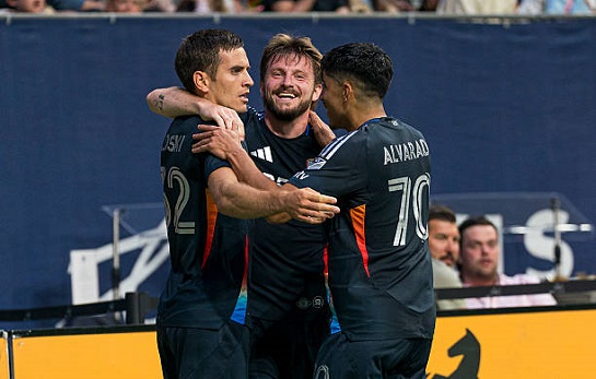 | Регулярный чемпионат MLS возобновился после полуторанедельной паузы. Игровой день состоял из одиннадцати поединков, так как “Интер Майами”, “Сиэтл Саундерс” и “Лос-Анджелес” на днях были задействованы в матчах Клубного чемпионата мира. Более того, флоридцы даже вышли в плей-офф и в воскресенье в 1/8 финала сыграют с “ПСЖ”. А вот “Сиэтл” и “Лос-Анджелес” закончили выступление в турнире по итогам групповой стадии, на двоих набрав лишь одно очко, и в ближайшие выходные вернутся к выступлениям в регулярном чемпионате MLS. Несмотря на сокращённую программу, игровой день получился крайне увлекательным. Его главным событием стала победа “Сан-Диего” над “Ванкувер Уайткэпс” в ярчайшей “перестрелке” двух сильнейших команд западной конференции. Калифорнийцы благодаря успеху в Канаде стали лидерами запада. А лучшей командой не только на востоке, но и во всей лиге, остаётся “Филадельфия Юнион”, заработавшая очередные 3 очка по итогам гостевой игры с “Чикаго Файр”. “Спортинг Канзас-Сити” с Магомедом-Шапи Сулеймановым в составе отметился драматичным камбэком в домашнем матче с “Шарлоттом”. Правда, россиянин не присутствовал на поле при организации “волшебниками” волевой победы в самой концовке, так как был заменён в середине второго тайма. А вот “Атланта Юнайтед” выдала очередное провальное гостевое выступление, по всем статьям проиграв “Коламбус Крю”. Алексей Миранчук отыграл 77 минут и ничем ярким не запомнился. ФНК в данном обзоре подвёл подробные итоги игрового дня в MLS. ![]() Фото - Getty Images ”Сан-Диего” выиграл “перестрелку” в Ванкувере и возглавил запад. В главном матче игрового дня встретились сильнейшие команды западной конференции - “Ванкувер Уайткэпс” и “Сан-Диего”. Перед данным противостоянием канадцы возглавляли конференцию и имели двухочковый отрыв перед калифорнийцами. На протяжении большей части первого тайма новичок лиги атаковал острее соперника и на 35-й минуте по делу открыл счёт. После перехвата на чужой половине поля команда Майки Вараса провела стремительную контратаку, завершившуюся результативным ударом Илоски с добивания после собственного выстрела. Находясь на эмоциональном подъёме, футболисты “Сан-Диего” тут же удвоили преимущество. Илоски оформил дубль, поразив владения Такаоки ударом из пределов штрафной площади. После неудачного отрезка хозяева быстро пришли в себя и сократили отставание до минимума. Затяжной розыгрыш углового в их исполнении завершился результативным ударом Окампо. Правда, радость “Уайткэпс” была совсем недолгой, так как спустя минуту “Сан-Диего” вернул себе преимущество в 2 мяча. Илоски утвердился в статусе главного героя матча, сделав хет-трик благодаря результативному удару головой после подачи Дрейера с правого фланга. В начале второй половины встречи Милан продолжил свой бенефис. Нападающий “Сан-Диего” переиграл Такаоку в ближнем бою и сделал покер. Также нужно отметить Дрейера, трижды ассистировавшего партнёру. К чести футболистов “Ванкувера”, они сдавались и пытались возродить интригу. В середине второго тайма команда Йеспера Соренсена сократила отставание до двух мячей усилиями Лаборды. Но организовать полноценный камбэк хозяевам не удалось. На 90-й минуте Анхель снова довёл перевес калифорнийцев до трёх голов, легко переиграв Такаоку в ближн