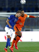 Сборные Италии и Нидерландов сейчас не в лучшей форме. Это в очередной раз подтвердил их очный матч, прошедший на стадионе новой команды Алексея Миранчука. В городе Бергамо сошлись итальянцы и голландцы, продлив неудачные серии. Хотя у «оранжевых» есть повод для радости – их сборная отличилась впервые за три матча. После ухода Рональда Кумана сборная Нидерландов ещё не забивала. Однако более целостный футбол продемонстрировали итальянцы, захватившие инициативу с первых минут. Хозяева серией хороших атак раскачали оборонительные редуты Франка де Бура, а контрольный выстрел нанёс Лоренцо Пеллегрини, откликнувшийся на передачу Николо Бареллы. И были шансы на удвоение преимущества, но Чиро Иммобиле загубил два момента, показав, почему его так и не забрал топ-клуб. После неудачных действий форварда «Лацио» расслабилась и вся команды, включилась игровая аритмия, голландцы взяли мяч, территорию и наконец-то забили. Донни ван де Беек с пяти метров расстрелял Доннарумму, после передачи/удара Мемфиса Депая. Так прервалась трёхматчевая «сухая» серия Нидерландов. Во втором тайме голландцы больше терпели, чем играли. Был конечно хороший момент у Мемфиса Депая, которого итальянцы оберегали с особой любовью, но далее всё в свои руки взяла «скуадра адзурра». Мяч лучше ходил у хозяев, Мойзе Кен освежил игру на фланге и частенько опасно простреливал, обостряя, получались отличные контратаки после неудачных стандартов соперника. Но Чиро Иммобиле продолжал губить моменты, теперь в никуда ушёл чистый выход один на один. Ничейный счёт так и остался гореть на табло. Франк де Бур и Роберто Манчини недовольно взирали на поле, но понимали – сегодня на большее их команды не способны.