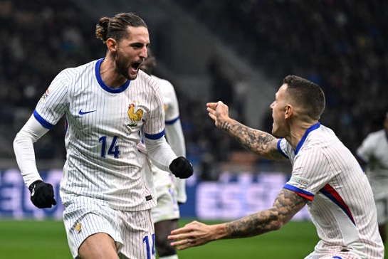 Французам удалось забить очень быстрый гол на угловом – на третьей минуте Рабьо замкнул подачу Диня от флажка, воткнув головой мяч под перекладину. Дальше команды полчаса бодались на грани фола и практически без моментов, чтобы затем за три минуты забить дважды. Сперва Динь классно пробил со штрафного, а мяч от перекладины отскочил в Викарио и юркнул в сетку. Итальянцы оперативно сократили разрыв – потеряла оборона гостей в штрафной Камбьясо, влет замкнувшего подачу Димарко. И после перерыва шло то же бодалово, но в середине тайма французы вновь здорово реализовали стандарт. Динь теперь грузил со штрафного, но снова успешно нашел голову Рабьо, оформившего дубль. Создав перевес в два мяча, французы очень уверенно отработали по счету, а у Спаллети не нашлось плана В, чтобы переломить ситуацию. Замены его игру не усилили. Шикарная реализация стандартов от команды Дешама и реванш за поражение в первом круге, причем с тем же самым счетом. Ну а вишенкой на торте для гостей стало то, что за счет лучшей разницы мячей (+6 против +5) они еще и с первой строчки итальянцев скинули, выиграв группу. ![]() Фото - Getty Images Предыстория Итальянцы мощно прошли групповой этап, лишь однажды поделив очки с Бельгией. Франция всё никак не может поймать свою игру, а без неё хромает и результат. На днях команде Дешама не удалось вскрыть оборону Израиля, что позволило аутсайдеру зацепить первое очко. Впрочем, в плей-офф Франция все равно пробилась, поскольку бельгийцы провели турнир еще более блекло и невзрачно. Сегодня гости могут вырваться на первое место, но придется отыграть два мяча перевеса, что Италия имела в первом круге – тогда команда Спаллетти победила 1:3. В любом случае, места – условность, неизвестно, даст ли первая строчка реальное преимущество в плей-офф. А вот взять реванш за домашнее поражение французам хочется. Ситуация тяжелая именно в атаке у гостей. Мбаппе Дешам пока не дергает, а Гризманн закончил. Это долгое время две ключевые фигуры, сменщики которых пока результат не обеспечивают. Добавим травмы Чуамени, Фофана и Дембеле. У итальянцев в лазарете Калафьори и Риччи. Ход матча Спаллетти в не имеющем серьезного турнирного значения матче решил проверить Викарио. В остальном состав хозяев был боевым. Реабилитированный Тонали составил компанию Фраттези и Локателли в центре поля, Барелла расположился выше под Ретеги. У гостей слева появился Динь, а Гендузи, Коне, Рабьо и Нукунку образовали ромб в центре. Впереди вышли Тюрам и Коло Муани. Первый же угловой французов на третьей минуте стал голевым. Динь подал во вратарскую, где выиграл Рабьо воздух у Буонджорно и уложил мяч в угол. Пропущенный мяч хозяев из колеи не выбил – они активно пошли вперед и на исходе стартовой десятиминутки создали первый момент. Барелла взял на себя, протащил мяч и хлестко пробил в ближний угол. Меньян сумел парировать. Обе команды не стеснялись тактики мелкого фола, но со стандартов остроты не хватало и тем, и другим – плотнее гораздо стали действовать защитники при подачах после результативного удара Рабьо. На исходе трети тайма Гендузи расчехлил пушку из-за штрафной, но получилось заметно выше створа. К середине тайма игра подравнялась. С очередного стандарта, заработанного итальянцами, Димарко нашел-таки подачей голову Ди Лоренцо, но пробил тот с нескольких метров ря