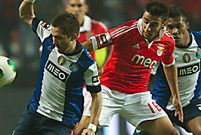 "Порту" и "Бенфика" подошли к личному противостоянию с хорошими результатами и в хорошей форме. Ни те, ни другие ещё не знают горечи поражений в нынешнем чемпионате. И самое главное, что это достижение продолжается и после их личного сражения. Что касается потерь команд, то "Порту" недосчитался одного из своих ключевых игроков в атаке - травмированного Джеймса Родригеса, а также испытывающего проблемы со здоровьем Майкона. У "Бенфики" же отсутствовал столб обороны команды в лице Луизао. В остальном оба тренера выставили боевые составы. Отметим, что в последних 12-ти домашних матчах чемпионата против "Порту" "Бенфика" выиграла лишь трижды, причем всякий раз с разницей лишь в один мяч. "Драконы" за этот промежуток времени обыграли "Орлов" в Лиссабоне пять раз. С первых минут команды ринулись атаковать ворота друг друга. Секундная стрелка не сделала двух оборотов, а в активе грандов уже числилось по моменту. Правда у "Порту" он был скрашен судейской ошибкой. Стивен Дефур, что было видно на повторе, сумел избежать офсайда и уже вываливался на рандеву с Артуром, однако боковой арбитр, как это принято говорить, перестраховался и флаг поднял. "Бенфика" ответила стремительно. Сальвио подал угловой, а Энцо Перес опасно пробил головой. Стоит отдать должное Элтону, который занял правильную позицию и намертво мяч забрал. Следующего момента долго ждать не пришлось, к тому же он стал голевым. "Драконы" заработали штрафной, который исполнил Жоау Моутинью. Подача пошла на Джексона Мартинеса, который пытался переправить снаряд затылком, но так его и не коснулся, чем явно смутил всех, кроме Элиакима Мангаля. Центральный бек "Порту" воспользовался оплошностью оборонительных редутов и просто подправил мяч в сетку. Впрочем, радовался "Порту" всего две минуты. "Бенфика" яростно пошла в атаку, которую блестящим ударом завершил Неманья Матич. Опорник "Орлов" не оставил никаких шансов Элтону, который лишь взглядом проводил круглого в сетку. Удар был неберущимся для вратаря. В первую очередь по силе. Команды продолжили радовать публику. На 15-й минуте грубую ошибку допустил кипер хозяев Артур, который подарил гол Джексону Мартинесу. Стоит отметить настырность колумбийца, который как будто знал, что подобное может случиться. Ещё больше разозленная "Бенфика" пошла вперед и завершила свою атаку до логического завершения. Элтон, играя на выходе, отразил прострел справа прямо на Гайтана, с 10-ти метров вколотившего мяч под перекладину - 2:2. После такого резвого начала силы, видимо, покинули игроков, в чьих действиях начали прослеживаться сумбур и хаотичность. Соперники все больше и больше начали грешить неточными передачами, футбол в их исполнении стал более вязким. Собственно так все и продолжалось вплоть до перерыва. А после оного команды чередовали затишье с опасными моментами, причём поочерёдно. По-настоящему опасный момент был, пожалуй, у Кардосо, но парагваец своим шансом пополнить голевой запас не воспользовался. Выйдя на рандеву с Элтоном форварду "Орлов" не удалось обыграть кипера "Драконов". В итоге, полное равенство, и по игре, и по счёту, и даже по количеству голов забитых в нынешнем сезоне лучшими снайперами команд.