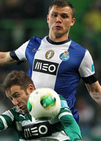 Начать же конечно стоит с центрального матча в туре. Когда-то в этом противостоянии двух из трех китов, на которых держится португальский чемпионат, могла решиться судьба титула. Увы, сейчас "Порту" и "Спортинг" - команды разного уровня притязаний и класса. Глаза отказываются верить, но цифры не врут - по итогам двух третей дистанции этих соперников в турнирной таблице разделяло 30 очков. "Спортинг" меняет тренеров словно модная дама перчатки, но мессию, который бы вытащил команду из нижней части "табели о рангах", найти никак не может. Только в этом сезоне лиссабонской командой руководили Рикарду Са Пинту, Осеану да Круж, Франки Веркотерен и Жезуалду Феррейра - последний, видимо, "доживет" на посту главного тренера до конца сезона. В середине январе был неплохой отрезок в исполнении "Львов", когда они выиграли в двух турах кряду, но в последующих пяти встречах потерпели три поражения. "Порту" до сего тура продолжал идти нога в ногу с "Бенфикой", лишь изредка, но обязательно синхронно с "Орлами" теряя очки на дистанции. Перед 21-м туром "Драконы" занимали 1-е место при равенстве очков с конкурентом благодаря чуть лучшей разнице мячей. Кроме того, не будем забывать, что команда Витора Перейры продолжает выступать в Лиге Чемпионов, где имеет хорошие шансы пройти "Малагу" в 1/8 финала. Противостояние этих команд на "Жозе Алваладе" почему-то отличается крайне низкой результативностью, это подтвердилось и на сей раз. На игру с "бело-синими" "Львы" вышли практически с пятью защитниками. Диер хоть номинально и значился в полузащите, но действовал в обороне, помогая своей команде отбиваться от атак "Порту". Собственно, именно плотность защитной линии хозяев и привела к тому, что в первом тайме подопечные Витора Перейры практически не приближались к владениям Руи Патрисиу, делая ставку на дальние удары. Лишь ближе к перерыву Патрисиу действительно пришлось вступить в игру, но он не сплоховал. Привычно активен был Джексон Мартинес, несколько раз выходивший на ударную позицию. Тем не менее, в створ колумбиец не попадал. Не будем забывать и про Марата Измайлова, который, между прочим, играл против своей бывшей команды. Обстрел ворот Патрисиу продолжался весь первый тайм и лишь под его занавес реальную возможность имели хозяева. Рики ван Вольфсвинкел нашел лазейку в обороне "Порту", получил мяч на линии штрафной и направил его в дальний угол, однако Элтон оказался на высоте. После перерыва у хозяев была ещё одна возможность. Чуть-чуть точности не хватило удару Брумы. Казалось бы, что удаление полученное "Спортингом" за 10 минут до конца матча, позволит "Драконам" набрать три очка, но, увы, сил у "Порту" для последнего штурма попросту не осталось.