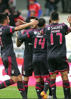 "Жил Висенте" крайне не повезло с календарём на концовку сезона - поочерёдно матчи с "Бенфикой" и "Порту". "Петухи" и так имеют маленькие шансы спастись, так ещё и соперники в конце сезона попались просто непроходимые. Непроходимость эту в отчётном туре доказала "Бенфика", которая камня на камне не оставила от своего соперника. Нет особого смысла описывать события матча, в котором, по сути, играла одна команда. Класс исполнителей настолько разный, что и речи о возможной интриге быть не могло. Хотя в первом круге "Орлы" довольствовались лишь одним взятием ворот, а на этот раз решили улучшить и без того отличную разницу забитых и пропущенных мячей. Первый гол "Бенфики" получился радующим глаз. Красивая многоходовка завершилась отличной передачей Сальвио на Макси Перейру. Уругваец, пожалуй, даже сам не ожидал такого тонкого хода от партнёра, поскольку казалось, что аргентинец сейчас сам решит вопрос о взятии ворот. Но получилось куда эффектнее и Перейра поражал уже пустые ворота. Конечно хозяева огрызались, пусть и изредка. Например, можно вспомнить удар Язалде и последовавший за ним сейв Жулио Сезара. "Бенфика" же показала свой класс и в одной из следующих атак, которую завершил Жонас. Бразилец сейчас просто в потрясающей форме, чего и говорить. После этого хозяева создали несколько неплохих моментов, но поразить ворота "Орлов" так и не смогли. Те, в свою очередь, после перерыва продолжили начатое. По голу забили Луизао и Лима, а финальный штрих остался за Макси Перейрой, который оформил дубль, сыграв на добивании после удара Лимы.