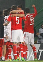 | Главным событием 25-го тура чемпионата Португалии стало лиссабонское дерби, в котором сыграли главные претенденты на чемпионство. В итоге "Бенфика" в гостях обыграла "Спортинг", взяла реванш за поражение в первом круге и обогнала "львов" в турнирной таблице, став единоличным лидером чемпионата. Перед ответным матчем 1/8 финала Лиги чемпионов против "Зенита" команда Руя Витории получила большой заряд положительных эмоций. "Порту" имел возможность сократить отставание от "Спортинга", но в своём матче "драконы" проиграли. "Брага" дома одержала трудную победу над "Порту", забив решающий гол в самом конце встречи. О главных событиях 25-го тура чемпионата Португалии в нашем традиционном обзоре.