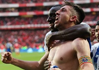| Главным событием 30-го тура чемпионата Португалии стало противостояние "Бенфики" и "Порту". Именно эту встречу многие специалисты называли битвой за золото. Лиссабонские "орлы", которые только недавно вернулись на первое место, опережали "драконов" на одно очко. Если бы команда Руя Витории победила бы, то борьбу за чемпионство можно было бы считать законченной. Ничья сохраняла бы интригу до последнего тура, но при этом делала бы "Бенфику" фаворитом в борьбе за золото. А вот победа "Порту" всё меняла. И "драконы" этой самой победы добились. Когда казалось, что битва на "Эштадиу да Луж" завершится без забитых мячей, на авансцену вышел капитан "Порту" Эктор Эррера, который великолепным ударом поразил ворота "Бенфики". Так подопечные Сержиу Консейсау одержали важнейшую победу, обогнали "орлов" на два очка и вернулись на первое место. Теперь именно "Порту" является главным фаворитом в борьбе за чемпионский титул. Что касается лиссабонского "Спортинга", то он в гостях в фееричном матче обыграл "Белененсиш" со счётом 4:3 и сократил отставание от "Бенфики" до трёх очков. ФНК рассказывает о главных событиях 30-го тура португальского первенства.