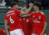 Лиссабонское дерби болельщики ждали с нетерпением. Даже нападающий "Ювентуса" Криштиану Роналду прилетел на "Жозе Алваладе", чтобы поддержать свой родной "Спортинг", но присутствие знаменитого форварда "львам" не помогло. Уже на 11-й минуте "Бенфика" открыла счёт. Алехандро Гримальдо открылся на левом фланге, получил мяч от Габриэла, а затем навесил в штрафную, там прекрасно на "втором этаже" сыграл Харис Сеферович, который головой вколотил мяч в цель, забив в пятом матче подряд. Всего на счету швейцарского форварда стало 11 голов. В данный момент он находится в прекрасной форме и является грозным оружием "орлов". Забив гол, "Бенфика" немного отошла на свою половину поля. Вскоре "Спортинг" мог восстановить статус-кво. Вендел заработал опасный штрафной, к мячу подошёл Бруну Фернандеш, который нанёс классный удар по воротам, а игровой снаряд после небольшого рикошета от "стенки" проскочил рядом со штангой. Одиссеас Влаходимос на этот выстрел не среагировал, так что гостям в какой-то степени повезло. А на 22-й минуте Жоау Фелиш вколотил мяч в сетку ворот "Спортинга". Молодой нападающий уже отпраздновал свой гол, как судья отправился смотреть видеоповтор. И система VAR помогла Артуру Соарешу Диашу разобраться в эпизоде. Жоау Фелиш нарушал правила, когда отбивал мяч у Вендела перед штрафной площадью "Спортинга". Последующий удар в угол у 19-летнего футболиста получился классным, но фол всё-таки был. Таким образом, счёт остался без изменений. Пока бело-зелёные решали свои проблемы в обороне, "Бенфика" продолжала создавать моменты. В очередном эпизоде Сеферович по месту левого инсайда выскочил практически один на один с вратарём соперника, но Ренан Рибейро спас свою команду. На 35-й минуте Луиш Пицци взял игру на себя. Один из лидеров "Бенфики" продемонстрировал эффектный дриблинг в штрафной площади "львов", в итоге он оказался на газоне, но судья пенальти не назначил. Тут же опасно по воротам выстрелил Жоау Фелиш, однако он попал прямо в голкипера хозяев. Не прошла и минута, как счёт стал 2:0 в пользу "Бенфики". Сеферович выполнил мастерский пас на ход Жоау Фелишу, а тот легко реализовал выход один на один, пробив в противоход Ренану Рибейро. Судья на всякий случай сходил посмотреть видеоповтор, ведь игроки "Спортинга" были уверены, что форвард "орлов" забивал из офсайда. Система VAR подтвердила, что гол был забит по всем правилам. Казалось, на этом интрига умерла, но перед самым перерывом Луиш Нани выдал отличный пас на Бруну Фернандеша, а тот в одно касание с линии штрафной заставил капитулировать Одиссеаса Влаходимоса.