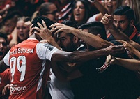 | В чемпионате Португалии завершился пятый тур и лидеров осталось только двое. "Бенфика" разобралась с аутсайдером "Авешом", отправив в его ворота два безответных мяча, авторами которых стали Жоау Фелиш и Франко Серви. Команда Руя Витории набрала 13 очков. По 10 баллов было у "Браги" и лиссабонского "Спортинга". Они играли между собой, и "львы" потерпели гостевое поражение. Всё решил гол бразильского нападающего "Браги" Диего Соузы, который не только принёс своей команде важнейшую победу, но и с пятью голами возглавил гонку бомбардиров. На третьей позиции в турнирной таблице расположились футболисты "Порту", которые с удовольствием воспользовались оческой "Спортинга" и обогнали его. Команда Сержиу Консейсау в гостях играла против "Сетубала" и оказалась сильнее со счётом 2:0. В первом тайме отличился Венсан Абубакар, а ближе к концовке встречи эффектным ударом точку поставил Сержиу Оливейра. ФНК рассказывает о главных событиях пятого тура португальского первенства.