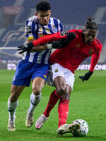 В центральном матче отчётного тура "Порту" на своём поле принимал "Бенфику". Флагманы последних лет в нынешнем сезоне отстают от лиссабонского "Спортинга". И вот в очном матче "драконы" и "львы" должны были решить, кто бросит вызов лидеру. На счету обеих команд было по 31 баллу. В прошлом туре команда Сержиу Консейсау на выезде разгромила "Фамаликан" со счётом 4:1. А подопечные Жоржи Жезуша разобрались с "Тонделой" – 2:0. "Порту" начал поактивнее. На 7-й минуте позиционная атака хозяев завершилась плотным дальним ударом Матеуса Урибе - Одиссеас Влаходимос справился. "Бенфика" ответила мгновенно. Алехандро Гримальдо откликнулся на длинный диагональный перевод, зацепился за мяч на левом фланге и классно прострелил на ближнюю штангу. Харис Сеферович опередил своего оппонента и пробил в ближний угол, но мяч проскочил мимо цели. А на 17-й минуте лиссабонские "орлы" открыли счёт. Если первой атакой по левому флангу они прощупали слабое место в обороне "Порту", то со второй попыткой удалось провести голевую комбинацию. Нуну Тавареш слева забросил мяч в штрафную на Сеферовича, тот в одно касание вывел на убойную позицию Гримальдо, и испанский футболист не промахнулся, забив свой второй гол в сезоне. "Порту" мгновенно перехватил инициативу. Много времени "драконам", чтобы сравнять счёт, не потребовалось. На 25-й минуте Сержиу Оливейра выдал "закидушку" в штрафную, там за мяч зацепился Хесус Корона, который элегантно обыграл своего оппонента, а затем вывел на ударную позицию Мехди Тареми. Иранский нападающий аккуратно пробил в дальний угол, а мяч через небольшой рикошет от Муссы Марега залетел в сетку. Сначала гол записали на Тареми, но в итоговом протоколе в качестве автора забитого мяча был отмечен Марега. Вскоре после пропущенного мяча футболисты "Бенфики" провели шикарную атаку. Рафа Силва промчался вперёд и сыграл правее на Луиша Пицци, тот грамотно прострелил на Дарвина Нуньеса, уругвайский нападающий из убойной позиции в одно касание выстрелил вроде бы наверняка, но "Порту" спасла штанга. На 36-й минуте последовал ответ "драконов". Луис Диас разыграл своеобразную "стенку" с Хесусом Короной, после чего нанёс обводящий удар в дальний угол. "Бенфике" повезло, что мяч пролетел рядом со штангой. В концовке тайма команде Жоржи Жезуша удалась быстрая контратака, которая завершилась голевым моментом. Дарвин Нуньес оказался в выгодной позиции, но попасть в цель не сумел.