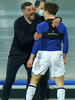 | Интересным получился 17-й тур чемпионата Португалии. Единоличным лидером турнира стал "Порту". Команда Сержиу Консейсау после первого тайма уступала в гостевом матче против "Эшторила" 0:2, однако сумела не просто сравнять счёт, но и вырвать победу. Решающий гол забил вышедший на замену сын главного тренера Франсишку Консейсау. И если "Порту" сотворил камбэк, то лиссабонский "Спортинг" всё-таки потерпел своё первое поражение в сезоне, проиграв со счётом 2:3 "Санта-Кларе". Таким образом, "Порту" стал единоличным лидером, оторвавшись от "львов" на три очка. "Бенфика" сократила отставание от "Спортинга". Лиссабонские "орлы" дома не без труда переиграли "Пасуш" со счётом 2:0. А вот "Брага" потеряла очки в домашнем поединке с одним из аутсайдеров "Фамаликаном", уйдя от поражения на 90-й минуте. Футболисты "Жил Висенте" обыграли "Гимарайнш" и вышли на пятое место. А главный аутсайдер турнира "Белененсеш" одержал свою вторую победу в сезоне, одолев в драматичном поединке прямого конкурента "Ароку". ФНК подводит итоги игрового уик-энда в португальской примейре.