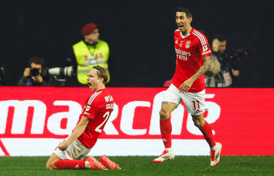 Финал Кубка португальской лиги ожидаемо получился упорным и бескомпромиссным. «Спортинг» и «Бенфика» стоили друг друга, и закономерно, что в основное время победу из них никто так и не добыл. Особенно ярким получился первым тайм этого лиссабонского дерби. Команды отвечали атакой на атаку, стремительно пересекая центр поля. В дебюте встречи «Бенфика» атаковала настойчивее, но выпады «Спортинга» таили в себе большую угрозу. На 11-й минуте Виктор Декьереш мог отличиться, но под его удар вовремя подставил ногу Антониу Силва. «Орлы» стремились завершать ударами едва ли не каждую свою атаку, однако с дальними выстрелами Франко Исраэль справлялся. Впрочем, номинальные гости добились своего. На исходе получаса игры Анхель Ди Мария нашёл передачей на левом краю штрафной Шельдерупа, и Андреас закрутил мяч под дальнюю штангу. Затем команды обменялись моментами, но Вангелис Павлидис и Эдуарду Куарежма в верхний угол не попали. «Спортингу» удалось отыграться незадолго до перерыва – Макси Араухо заработал пенальти, и его уверенно реализовал Дьекереш. Нельзя сказать, что во втором тайме соперники заиграли осторожнее, но остроту их атаки потеряли. Правда, на 61-й минуте Ди Мария к своему ассисту едва не добавил забитый мяч, однако Исраэль отразил его удар в дальний угол. Команды зарабатывали много стандартов, но ничего из них не выжимали. В итоге встреча докатилась до серии пенальти, в которой футболисты пробили точно тринадцать раз подряд. И лишь Тринкан не реализовал свою попытку – сейв Анатолия Трубина принёс «Бенфике» трофей. «Орлы» в восьмой раз в своей истории завоевали Кубок португальской лиги. Правда, предыдущий успех случился в далёком 2016-м году. «Спортинг» же попытается реабилитироваться в других турнирах. ![]() Фото - Getty Images. Предыстория. Финал Кубка португальской лиги интриговал своей вывеской — в битве за трофей в решающем матче сошлись в лиссабонском дерби «Спортинг» и «Бенфика». Обе команды в последнее время не отличаются стабильностью. «Спортинг» после ухода Рубена Аморима в «Манчестер Юнайтед» сдал - в конце года «львы» потерпели четыре поражения кряду, но вовремя вышли из пике. После семнадцати туров Примейры «Спортинг» возглавлял турнирную таблицу, но «Порту» и «Бенфика» дышали ему в спину. Лидировать могли и «орлы», однако они в конце года уступили тому же «Спортингу» (0:1), а после проиграли и «Браге» (1:2). Интересно, что состав полуфиналов Кубка португальской лиги составила первая четвёрка из чемпионата. И на этой стадии «Бенфика» взяла реванш у «Браги», разгромив соперника со счётом 3:0. Противостояние «Спортинга» и «Порту» получилось куда более упорным. «Львы» взяли верх за счёт точного удара Виктора Дьекереша в начале второго тайма (1:0). Что же касается стадии четвертьфиналов, то на ней «Спортинг» одолел «Насьонал» (3:1), а «Бенфика» крупно обыграла «Санта-Клару» (3:0). Итог отчётного противостояния сложно было спрогнозировать. В двух предыдущих очных поединках в Примейре побеждал «Спортинг», однако если брать Кубок португальской лиги, то в этом турнире «Бенфика» играет со «львами» удачнее (три виктории при всего одном поражении). И, в целом, данный трофей «орлы» брали чаще, чем «Спортинг» (семь удачных походов против трёх). Ход матча. Дьекереш и Тринкан составили атакующий дуэт у «Спортинга», Сент-Юсте и Диоманде образова