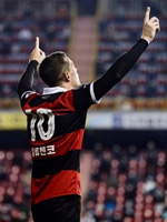 Южная Корея. «Пхохан» Станислава Ильюченко в выходные дома учинил разгром лидеру чемпионата Южной Кореи – «Ульсану», и российский бомбардир принял в этом самое деятельное участие. 30-летний нападающий вышел в основе у хозяев и отличился уже на 3-й минуте. Ильюченко замкнул подачу с углового и метров с пяти пробил головой в ближний нижний угол. Во втором тайме гости схлопотали два удаления, и на 71-й минуте Станислав оформил дубль. Его одноклубник, замыкая подачу справа, попал в защитника, мяч отлетел к россиянину, который в касание выстрелил впритирку с дальней штангой. Дальше на кураже «Пхохан» провёл ещё два гола и в итоге отпраздновал крупную победу (4:0). В турнирной таблице «Стилерс» остались на третьем месте. От лидирующего «Ульсана» команду Ильюченко отделяют семь очков. На счету Станислава в нынешнем чемпионате стало 17 мячей в 24-х матчах. В следующем туре «Пхохан» сыграет на выезде с «Тэгу».