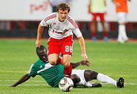 Но вот и "Анжи" стал отвечать. Первые вылазки проходили с помощью дальних забросов в переднюю линию. Это эффекта не приносило. Зато на 20-й минуте была развернута отменная комбинация по всей ширине поля. Она завершалась мягким переводом Жосана слева на дальний край штрафной, где Агаларов поймал на позиционной ошибке Янбаева, принял мяч и сильно пробил в ближний угол. Гилерме успел сложиться и переправить мяч в штангу, а потом накрыть его. Опасно огрызнулись гости. Но преимущество "Локомотива" никуда не делось. Давление на владения "Анжи" не спадало. Вот опаснейший навес слева голкипер снимает фактически с головы Майкона в отчаянном выходе. Тут же Траоре здорово перед линией штрафной разделывается с группой опекунов и бьет по воротам неточно - силы на обводку все потратил. Наконец, осмелевший Смольников подключается справа и наносит могучий выстрел в ближний угол метров с 30-ти - Ревишвили не без труда "круглого" выносит на угловой.