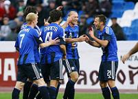 Еще до этого случился любопытный эпизод. Желтую карточку получил Благой Георгиев. Что тут необычного? Причина. Еськов предупредил игрока за не снятый браслет. Это же запрещено, а болгарин решил «проскочить». Не вышло. Постепенно игра выровнялась, и уже сложно было сказать, кто играет первым номером. В хорошем темпе продвигались команды туда-сюда. На 16-й минуте после подачи справа Кириченко изловчился из неудобной позиции, пробив головой в район девятки. Мяч прошел выше цели, но Джанаев на всякий случай красиво выпрыгнул. Возня продолжалась бодрая, однако остроты ей не хватало хронически. Мяч доставлять в штрафную удавалось лишь забросами, а там никто из атакующих не цеплялся за посылаемые снаряды. Оборона пока вчистую и без вариантов переигрывала не очень-то искусно играющую атаку. С обеих сторон. К середине тайма кое-что острое все же выросло. Сперва Джанаев выловил подачу соперника. А затем куда больше пришлось попотеть Кински. Лахиялов наносил дальний удар. А подставленная нога Асильдарова подкорректировала полет мяча, но голкипер сориентировался и выручил команду.