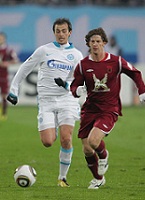 В Казани мало кто ждало зрелищной и интересной игры. Дескать, «Зенит» выставит не самый сильный состав со слабой мотивацией. Либо проиграет, либо сгоняют ничейку грустную. Ничейку действительно сгоняли. Но какую! Любо-дорого посмотреть. А голевых моментов и накала страстей в ней хватило бы на полтура в исполнении казанцев. Начиналось все ожидаемо. «Зенит», которому ничего не надо, вышел довольно осторожно, присмотрелся к сопернику и взял концепцию игры на контратаке, контролируя ситуацию. Гости предлагали более мотивированному противнику гонять мяч, но сами внимательно его стерегли и поджидали момент для укола. Но в глаза бросалась не разница мотиваций, а разница в психологической свободе. Питерцы играли более раскрепощенно, легко и непринужденно, что придавало их действиям уверенности и свежести. «Рубин» же работал слишком напряженно, чересчур старательно, пыжился и суетился временами зря. Посему долго реальных угроз не возникало, хотя игра смотрелась цельно. Лишь частые стандарты портили общую картину. Но они-то и стали стартерами. «Зенит» на 20-й минуте разыграл корнер. А со второго добивания из-за штрафной удача повернулась лицом к Файзулину. Виктор слету приложился, мяч от спины Мейры влетел в сетку, дезориентировав вратаря. Далее зенитовцы пошли по проторенной дорожке и стали снижать атакующую активность все больше и больше, вскоре оказались совсем прижатыми неистово мечущимся противником. «Рубин» всеми силами наваливался на штрафную Бородина, но третий голкипер «Зенита» действовал выше всяких похвал и отвел не одну и не две угрозы, выручил не раз, как и защитники, порой спасавшиеся в последний момент. Тем не менее, до конца тайма продержаться удалось.