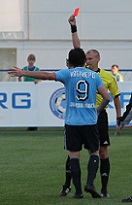 А в середине тайма футболисты «Амкара» провели затяжную атаку, которая завершилась голом. Никита Бурмистров получил мяч на правом фланге, просочился в чужую штрафную между Голубевым и Баляйкиным и здорово пробил в дальний угол – 0:1. Пропустив гол, самарцы немного активизировались и тут же имели шанс восстановить равновесие. Дмитрий Белоруков едва не поразил собственные ворота, пытаясь накрыть удар Кабальеро. К счастью для гостей, снаряд пролетел над перекладиной. Угловой волжане разыграли не слишком удачно. Футболисты «Амкара» сегодня практически не проигрывали верховые единоборства. На исходе получаса Андрей Кобелев провел вынужденную замену. Получившего повреждение Дмитрия Голубева сменил Ибрагим Цаллагов. Однако на этом беды хозяев не закончились. Всего через пару минут Верховцов снова головой самоотверженно накрыл выстрел соперника. Удар получился настолько мощным, что, видимо, белорусский защитник получил сотрясение мозга и смог покинуть поле только на носилках. Кобелеву пришлось в спешном порядке менять своего защитника и выпускать на поле Романа Воробьева. Теперь в защитной линии «Крыльев Советов» произошли серьезные перестановки. Жозеф-Ренетт передвинулся с фланга в центр, а Баляйкин опустился на место левого защитника. Однако и это было еще не все. За несколько минут до перерыва самарцы остались в меньшинстве. Луис Кабальеро был наказан прямой красной карточкой за свою несдержанность. Зачем парагваец уже после свистка ударил в грудь Сиракова непонятно. Казалось, ну куда уж больше. И так подопечные Андрея Кобелева настрадались сполна в первые сорок пять минут, так еще в компенсированное время в их ворота был назначен пенальти. Цаллагов сбил в своей штрафной площади Мартина Якубко. Одиннадцатиметровый уверенно реализовал Константин Васильев – 0:2. Свисток на перерыв волжане встретили с облегчением. Наконец-то этот ужасный первый тайм закончился.