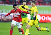 Болельщики «Спартака» перед самым началом поединка вывесили баннер памяти Ильи Цымбаларя. Побольше бы таких вот порывов души и почтения к людям со стороны фанатов и вообще нашего общества в целом, без всякой агрессии, конфликтов, а вот так, от души. Ну а игра начала складываться так, что «Анжи» смотрелся лучше своего соперника. Бухаров хорошо смотрелся, Билялетдинов с Григалавой что-то придумывали на передовой, а защита махачкалинцев отрабатывала как надо, без всяких погрешностей. Складывалось ощущение, что «красно-белые» снова сегодня получат оплеуху, что, конечно, означало бы полнейший крах Карпина и вообще амбиций москвичей на чемпионский титул этого сезона. Однако рано было хоронить эту дружину, потому что стали постепенно игровые связи у них налаживаться. Хурадо, да Кариока особенно выделялись. Рафаэль так и вообще последнее время чуть ли не лучше всех выглядит в стане столичного клуба. Первый опасный момент соорудили футболисты принимающей стороны, когда Хурадо с правого фланга забросил мяч на дальний край штрафной. Там Дмитрий Комбаров завладел мячом, ударил отлично, но Кержаков отбил перед собой, после чего накрыл собой «снаряд», ликвидировав всяческие угрозы своим воротам. Правда, недолго оставались цифры на табло неизменными. «Спартак», видать, вспомнил былое, и таки продавил оппонента. На 20-й минуте Паршивлюк оказался с мячом на правом углу штрафной, оформил навес в район одиннадцатиметровой отметки, а там уже Тино Коста головой отправил «снаряд» в левый нижний относительно себя угол. Тут проворонил, конечно, Епуряну ситуацию – 1:0 в пользу подопечных Карпина!
