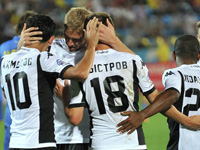 Олег Кононов в перерыве провёл одну рокировку - Быстров сменил Лаборде. Уже в дебюте второго тайма гости создали опасный момент. Это Ахмедов вошёл в штрафную и пробил по воротам с острого угла, однако в створ не попал. А "Ростов" в ответной атаке вполне мог претендовать и на третий пенальти. После навеса Думбия Полоз пробил по воротам, но угодил в руку Енджейцику, однако Низовцев на этот раз одиннадцатиметровый не назначил. На 50-ой минуте Быстрову удалось выскочить на рандеву с Плетикосой, но Стипе отразил его удар, на добивании оказался опять же Владимир, но хорват снова спас свою команду. Вскоре Ахмедов снова потревожил Плетикосу, но Одил вновь не смог его пробить, как не смог его пробить и Ари, наносивший удар с метра. Команды отвечали атакой на атаку. На 53-ей минуте хозяева заработали угловой, подачу с которого ударом в упор замкнул Торбинский, однако попал прямо в Синицына. Вскоре Кононов провёл и вторую замену - Вандерсон вышел на поле вместо Ари. И почти тут же "быки" увеличили своё преимущество в счёте. Ахмедов сыграл на Быстрова и вошёл в штрафную, после чего получил ответную передачу от Владимира и поразил дальний нижний угол - 0:2. Лишь только после этого на рокировки решился и Миодраг Божович, сменивший Бухарова и Фатуллаева на Григорьева и Ребко. Максим активно включился в игру и тут же попытался замкнуть ударом через себя навес справа, однако угодил в защитника. "Ростов" не отчаивался и продолжал идти вперёд. Вскоре дончане заработали два подряд штрафных и со второго из них едва не сократили разницу в счёте. Торбинский навесил в центр, откуда в левый угол пробил Гацкан, но Синицын снова выручил свою команду, отразив этот удар одной рукой. На 70-ой минуте Божович вынужден был сменить только вышедшего на поле Ребко и, видимо, получившего повреждение, на Трошечкина. А "Ростов" продолжал транжирить моменты. на 72-ой минуте после подачи углового мяч дошёл до Гацкана, но тот из выгодной позиции не попал в створ. Время истекало, а хозяева всё никак не могли даже сократить разницу в счёте. Вскоре третью рокировку провёл и Кононов, сменивший Измайлова на Аджиндажала. Вслед за этим Низовцев снова устроил паузу на водопой. На 78-ой минуте Трошечкин схлопотал предупреждение за грубый фол на Газинском в центре поля. Через некоторое время едва подача Думбия не дошла в чужой штрафной до Полоза, но Синицын кулаками выбил мяч. Тут же хозяева заработали угловой, но на этот раз остроты из него не выжали. Краснодарцы почти не выбирались на чужую половину поля, всё своё внимание уделяя обороне. На 87-ой минуте Гранквист отдал на своего голкипера неудобную передачу, но Синицын вновь сыграл надёжно. Хозяева атаковали уже не так опасно. Арбитр добавил к основному времени четыре минуты, и в этот отрезок Вандерсон едва не довёл счёт до крупного. Бразилец ушёл от двух оппонентов, но пробил чуть выше дальней "девятки". А вскоре Быстров ворвался в штрафную и направил мяч в ближний угол, но на месте оказался Плетикоса. В итоге "Краснодар" одержал вторую победу подряд, а "Ростов" уступил в третьем матче первенства из четырёх. Репетиция накануне еврокубков у команд получилась разной.