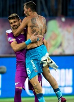 Центральный матч тура состоялся в Петербурге. Лидер чемпионата – «Зенит» принимал своего главного преследователя, столичное «Динамо». И игра сполна оправдала ожидания многочисленной аудитории как на стадионе, так и экранов. Нашлось место всему – обилие голов, интрига, возвращение старых героев, классные сэйвы. Держал ли Виллаш-Боаш в уме игру в Лиге Чемпионов на следующей неделе, или руководствовался чем-то ещё, но в стартовом составе довольно неожиданно вышел Аршавин. При этом и Кержаков, и Рондон остались в резерве. А Черчесов наоборот рискнул сыграть с двумя форвардами – Кокориным и Кураньи. Начало матча выдалось довольно спокойным в плане скоростей, хотя и с обилием стыков. А вот моментов практически не возникало. Поэтому шикарный удар в исполнении Вальбуэна стал для Лодыгина громом посреди ясного неба. Француз получил скидку от Ионова и, заметив, что голкипер в ближнем углу застыл, очень мягко подсёк мяч в дальнюю «девятку», по сути дела за шиворот Лодыгину его закинув. Впрочем, не прошло и десяти минут, как питерцы отыгрались. Кришито взял игру на себя, ушёл от двоих и пробивал с острого угла. Березовский грамотно отбивал мяч в сторону, но угодил точно в корпус Дугласу. Защитник стоял в паре метров и увернуться от мяча не имел никакой возможности. Досадный автогол. А за несколько минут до перерыва хозяева и вовсе вышли вперёд. Халк в несвойственной для себя манере сыграл в отборе и отправил в отрыв Аршавина, а Андрей сыграл как в лучшие годы. Первым касанием прокинул мяч на ход, а вторым из-под защитников пробил над Березовским. Во втором тайме гости последовательно наращивали давление на ворота питерцев. Оборона «Зенита» до поры до времени играла надёжно, но раньше или позже должна была начать давать сбои. На исходе часа игрового времени откровенно простил хозяев Ионов, замыкавший мягкий заброс Ванкера в касание, но пробивший выше створа. Через несколько минут Лодыгин каким-то невероятным образом успел среагировать на удар Дугласа после подачи корнера, сложиться и отбить мяч в сторону. Ещё несколько минут спустя Кураньи практически в упор расстреливал ворота головой – снова Лодыгин сыграл прекрасно, вытащив мяч из-под перекладины. И всё же вечно выручать вратарь не мог. Минут за десять до конца Самба выиграл борьбу после подачи со стандарта и по высокой дуге послал мяч в ворота. Лодыгин и здесь отбил, но в перекладину, рикошетом от которой мяч и опустился за линию ворот. Ничья была бы справедливым итогом матча, но её не случилось. Не прошло и пяти минут, как сохранивший в концовке силы Смольников промчался по флангу, выдал мяч Данни, получил выверенную обратную передачу португальца и пробил точно под дальнюю стойку. Важнейшую для себя победу одержал «Зенит», увеличив свой отрыв до шести очков. «Динамо» же второе уже поражение от прямого конкурента терпит, играя в обоих случаях как минимум не хуже соперника.