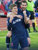 В дебюте южного дерби главным действующим лицом был Игнатьев, который сперва неудачно пробовал пробить в падении через себя, а затем здорово сыграл на перехвате перед чужой штрафной и выдал мощный рывок, но на толковый удар сил уже форварду не хватило. Ближе к середине тайма Новосельцев прихватил на угловом Спайича, который завалился на газон. Пенальти, четко исполненный Классоном. На исходе получаса игрового времени после серии отскоков в штрафной Газинский едва не отправил второй гол в ворота хозяев. Следом на угловом роняли Мартыновича, но второй пенальти арбитр не дал. «Ростов» ответил длинным забросом из глубины на дальнюю штангу, который замыкал с угла вратарской Чернов – Сафонов поймал мяч намертво. В раздевалку у «быков» была ещё пара моментов. Сперва Мартынович подрезал головой мяч из центра штрафной после подачи со стандарта – выручил Песьяков, который парировал затем и плотный выстрел Вандерсона с дуги. В дебюте второй половины хозяева получили право на опаснейший стандарт чуть правее дуги, но Попов зарядил в стенку. За полчаса до конца команды обменялись острыми моментами. Паршивлюк блокировал опасный удар Классона из центра штрафной, а мощный выстрел Еременко от угла штрафной пришелся чуть выше створа. Тут же ещё один шанс для гостей – Песьяков выбил мяч из-под ног Вандерсона, выходившего под острым углом к воротам, а затем успел вскочить и поймать мяч после удара головой от Классона во второй волне. Вскоре Шомуродов прорвался к воротам после длинного заброса из глубины, но под прессингом Мартыновича пробил в Сафонова. За 15 минут до конца свежий Ари крутил в ближнюю «девятку» - чуть выше. «Ростов» ответил ударом Еременко с опасного штрафного. В голову Фьолусону зарядил финн. Пару минут спустя Чернов прикладывался с подбора после корнера – чуть выше цели. Рамирес вскоре выдал классное соло, обыграв троих, но Классон в центре штрафной протянул с ударом, а выстрел Ари с менее удобной точки пришелся мимо створа. Как и сочный удар Еременко с угла штрафной в ответном выпаде. За пару минут до конца Роман выдал шикарную подачу внешней стороной стопы на Шомуродова, который в высоком прыжке подрезал головой мяч в нижний угол. В компенсированное время уже кросс Чернова слева замыкал ударом в тот же угол но ногой Элдор – на этот раз Сафонов блеснул мастерством.