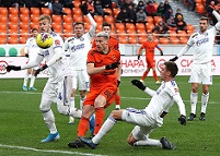 В Екатеринбург приехал набравший неплохую форму «Оренбург». Пока «шмели» добывали путевку в четвертьфинал Кубка в серии пенальти, оренбуржцы сливали дома «Химкам», зато сохранили больше сил. Команды начали без раскачки. Уже на второй минуте Черных замыкал подачу со стандарта, но пробил головой рядом со штангой. Пару минут спустя Алвеш классным вертикальным пасом отправил Фамейе на рандеву с Годзюром, и форвард гостей, подменявший Деспотовича, мастерски реализовал свой шанс. «Урал» мог отыграться, но к прострелу Погребняка на дальнюю штангу никто не успел, а удар Бавина с подачи Эль-Кабира после подбора пришелся рядом со штангой. На исходе трети тайма Погребняк затолкал мяч в ворота гостей, но и в офсайде был, и в руку ему мяч попал при приеме. Естественно, гол отменили. «Оренбург» ответил атакой справа. Фамейе после кросса Малых скинул под удар Алвешу, но рикошет от ноги защитника помог «Уралу» отделаться угловым. На экваторе тайма Кулаков мощно пробил с подбора из-за штрафной, так что Климович не без труда отбил мяч в броске. Минутой позже Погребняк запорол чистый выход один на один – здорово открылся под заброс Бикфалви, убежал к воротам, но пробил мимо дальней стойки. На исходе получаса игрового времени Ароян чуть не привез второй – решил вдоль ворот отдать пас, а Фамейе вылетел в прессинг, и лишь в последний момент выбил Поляков мяч у него из-под ног. Тут же могли хозяева сравнять – прошел заброс на Погребняка к линии вратарской, Павел продавил защитника и боднул в створ, но Климович чудом успел сложиться и спас. И еще один шанс – Димитров от лицевой скатил чуть назад под удар Бавину, пробившему по воробьям. За несколько минут до перерыва уже Бикфалви вколачивал головой мяч под перекладину из центра штрафной, и вновь блестящий сэйв Климовича не дал случиться голу. Его коллега Годзюр, напротив, начудил. В компенсированное время невнятный удар Алвеша должен был спокойно накрывать вратарь, но выронил мяч из рук, запустив его в сетку. В дебюте второго тайма Бикфалви классным скрытым пасом вывел на удар Меркулова, но с острого угла тот потревожил сетку только с внешней стороны. На экваторе тайма «шмели» сократили отставание. Выверенный кросс Кулакова замкнул Бикфалви, рикошетом от перекладины пославший мяч в сетку. Тут же Черных мог все закончить, но из района одиннадцатиметровой пробил чуть выше «девятки». Парфенов кинул в бой и Ильина, и Панюкова, но даже с тремя форвардами спасти хотя бы ничью «Урал» не смог.