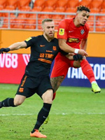 В центральном матче тура чемпион не оставил шансов своему главному преследователю. Питерцы мощно начали. На шестой минуте «Спартак» отскочил – после паса справа Азмун махнул мимо мяча на одиннадцатиметровой, но тот дошел до Вендела, который закрутил его в дальнюю крестовину. Попади – без шансов бы. Пару минут спустя как под копирку справа вскрыли хозяева оборону москвичей. Вендел на сей раз получил мяч и скатил в центр Азмуну, который вогнал его в нижний угол. Максименко тут сыграл не лучшим образом, пустив мяч между рук. На экваторе тайма «Спартак» отыгрался, хотя заслуга москвичей тут минимальна. Ловрен на лини вратарской хотел грудью сбросить мяч в руки Луневу, но вместо этого эффектно закинул мяч ему за шиворот под перекладину. Питерцы снова включились. Вскоре Дзюба замыкал кросс Сантоса, от одиннадцатиметровой подрезав мяч над перекладиной. Еще один длинный розыгрыш завершился обводящим ударом Оздоева с угла штрафной над дальней «девяткой». Пару минут спустя уже на Дзюбу прошла подача в центр штрафной, тот скинул головой на дугу, а Малком влет зарядил чуть выше перекладины. В раздевалку Азмун убежал один на один после заброса из глубины, но мощный удар иранца в ближний верхний угол приняла на себя штанга. Во втором тайме поначалу шла равная и вязкая борьба, но к середине его гости стали выдыхаться. За двадцать минут до конца Вендел с угла штрафной пробил рядом с дальней штангой, на что «Спартак» ответил ударом Кутепова после подачи со штрафного – рядом со штангой. Корнер «Зенита» пару минут спустя стал голевым. Джикия выиграл воздух после подачи, но вынес на дугу по центру, откуда Ракицкий влет уложил мяч в угол. Дальше хозяева добивали. Вендел завершал атаку пять в три, с угла штрафной размяв Максименко. Затем Малком продрался почти к лицевой, не сумев проткнуть мяч мимо голкипера с острого угла. За несколько минут до конца Дзюба бил головой из центра штрафной после кросса Сутормина – Максименко одной рукой достал мяч из-под перекладины. Следом Кузяев щелкнул рядом с перекладиной из пределов штрафной. «Зенит» все же дожал. Дриусси в компенсированное время обокрал Айртона и покатил в штрафную на Ерохина. Защитник выбил из-под ног, но прямо на Дзюбу, который аккуратно покатил мяч в угол в противоход Максименко.