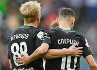 “Краснодар” в прошлом туре на выезде потерпел крупное поражение от ЦСКА и был страшно недоволен работой бригады арбитров во главе с Сергеем Ивановым. Однако ЭСК РФС признала правоту судей во всех эпизодах с назначениями пенальти в ворота “быков”. Ещё одна неприятность для краснодарцев прилетела спустя несколько дней после окончания матча. КДК РФС дисквалифицировал Джона Кордобу за оскорбления судей. К массе негативных эмоций для южан от матча с ЦСКА добавилось поражение от “Локомотива” в Кубке в серии пенальти. Разумеется, команда Сторожука рассчитывала вернуться на победный путь в домашней игре с “Химками”, и ей это удалось. Отметим, главный тренер “Краснодара” выпустил в стартовом составе двух самых свежих новичков команды - Ленини и Батчи. Причём, для Кевина это был дебют за южан. Хозяева уверенно провели первый тайм, по итогам которого они заработали преимущество в два мяча. Уже в дебюте встречи счёт открыл Сперцян, воспользовавшийся передачей Батчи. Для Эдуарда этот гол стал восьмым в чемпионате, и он делит лидерство в списке лучших бомбардиров с Промесом и Нобоа. Кстати, полузащитник “Краснодара” уже повторил свой показатель результативности прошлого чемпионата. А чуть позже футболист сборной Армении добавил к своему голу результативную подачу с углового на Кривцова, поразившего ворота Лантратова ударом со “второго этажа”. Футболисты “Химок” начали “просыпаться” лишь в самой концовке первого тайма. А по ходу стартового отрезка второй сорокапятиминутки им даже удалось сократить отставание в счёте. После подачи с правого фланга Глушаков сделал скидку на Кухарчука, и Илья ударом с близкого расстояния поразил ворота “Краснодара”. Химчане заметно добавили в атакующей активности во втором тайме. Они даже превзошли краснодарцев по владению мячом по итогам встречи, что мало кому удаётся в РПЛ. Команда Гогниева отмечалась интересными подходами к чужим воротам, однако совершить чудесный камбэк ей не удалось. При этом южане, разумеется, регулярно стали получать возможности для проведения контратак. Под занавес основного времени у Кривцова был отличный шанс оформить дубль, однако Никита с близкого расстояния угодил в перекладину. Зато уже в компенсированное арбитром время “быкам” всё же удалось забить третий мяч. Ахметов практически повторил свой феерический гол из кубкового матча с “Химками”. Он на дриблинге накрутил защитников и нанёс хлёсткий удар, который Лантратов потащил, а Кутовой, проводивший первый матч за главную команду “Краснодара” в нынешнем чемпионате, успешно сыграл на добивании. Команда Сторожука одержала четвёртую домашнюю победу кряду и догнала ЦСКА в турнирной таблице.