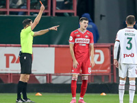 С точки зрения яркости афиши матч “Локомотива” и “Спартака”, безусловно, являлся центральным в 14-м туре. При этом обе команды демонстрируют нестабильные результаты и находились ближе к середине таблицы, нежели чем к лидирующей группе. Поэтому обоим коллективам нужно было играть на победу для улучшения турнирной ситуации. Абаскаль снова удивил выбором стартового состава. Возвращение Промеса было ожидаемым, но Квинси по позиции заменил Соболева, который вновь сел в запас. Так что, “Спартак”, как и в игре с “Пари НН” в позапрошлом туре, вышел с первых минут без полноценного центрфорварда, так как Промес перемещался по всему фронту атаки. Красно-белые на протяжении большей части первого тайма владели инициативой, но у них не получалось преобразовать это преимущество в регулярное создание остроты у ворот Лантратова. Спартаковцам часто приходилось сбиваться на дальние удары, которые не таили в себе большую угрозу для хозяев. “Железнодорожники”, в свою очередь, делали ставку на быстрые контратаки, но и хозяевам не хватало конкретики в завершающей стадии. Зато уже в концовке первого тайма у команды Галактионова прошла классная многоходовая комбинация, по итогам которой они заработали численное преимущество. Хлусевич ценой “фола последней надежды” сорвал выход 1 на 1 с Максименко для Миранчука. Футболисты “Локомотива”, естественно, пытались использовать численное преимущество ещё до перерыва. Баринов имел хорошую возможность открыть счёт в конце первой сорокапятиминутки после розыгрыша штрафного, но удар Дмитрия парировал Максименко.