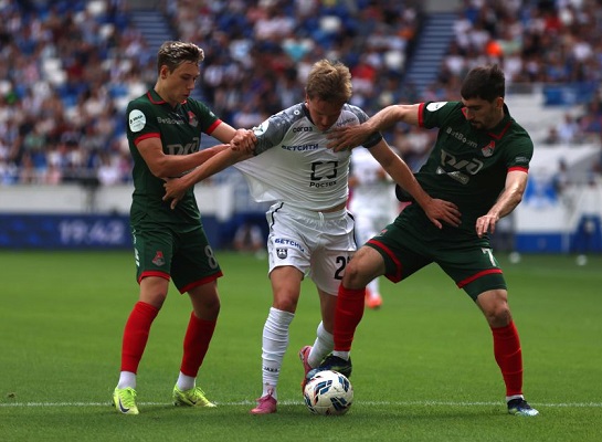 После убедительной победы над «Балтикой» в Кубке России несколько дней назад «Локомотив» не смог повторить успех. Более того, он едва не потерпел поражение, которое, исходя из содержания встречи, можно было бы считать вполне закономерным. «Балтике» удалось забить быстрый гол уже на третьей минуте, после чего она грамотно действовала по счету, то отдавая территорию сопернику и глубоко обороняясь, то проводя отрезки с активным давлением и массированными атаками. Причем эти вылазки, которые носили более эпизодический характер, чем постоянный контроль мяча со стороны «Локомотива», оказывались опаснее. Несколько раз в первом тайме калининградцы были близки ко второму голу. После перерыва ситуация не изменилась. Даже перестановки в составах никак не повлияли на общую картину. Давлению «Локомотива» не хватало конкретики и остроты, а «Балтика» создавала моменты и не использовала их. В итоге поплатилась – после штрафного шальной мяч влетел в сетку ворот хозяев, и на табло загорелась ничья, которая осталась до финального свистка. «Локомотив» впервые в чемпионате потерял очки. ![]() Фото - РПЛ Обе команды достаточно неплохо начали сезон. Особенно в чемпионате. «Локомотив» захватил лидерство, поскольку выиграл все матчи РПЛ, начав с разгрома «Сочи» (3:0). Потом были победы над «Краснодаром» (2:1), «Пари НН» (3:2) и «Спартаком» (4:2). В Кубке России «железнодорожники» проиграли ЦСКА (1:2), но потом одолели ту же «Балтику» (2:0) – буквально три дня назад. Сами калининградцы в чемпионате поделили очки с «Динамо» (1:1), разгромили «Спартак» (3:0), справились с «Оренбургом» (3:2) и сыграли вничью с «Крыльями Советов» (1:1). А вот в Кубке России помимо поражения от «Локомотива» был проигрыш «Акрону» (1:2). До предыдущей кубковой встречи нынешние соперники играли в позапрошлом сезоне четыре раза. В чемпионате оба поединка остались за «Локомотивом» (3:2 и 3:1), а в Кубке одна игра закончилась ничьей (2:2), в другой «Балтика» взяла верх в серии пенальти. Активно хозяева начали матч, и уже на второй минуте после ввода мяча из аута Хилю удалось пробить головой, но получилась скидка в руки вратарю. А вот через минуту он уже эффектно поразил цель. После борьбы на своей половине поля Максим Петров исполнил длинный перевод к штрафной на Хиля, тот не стал обрабатывать мяч, а сходу пробил ловко под дальнюю штангу, не позволив себя накрыть Монтесу и Морозову. Митрюшкин не спас. 1:0. Москвичам пришлось приходить в себя. На 10-й минуте «Локомотив» вырвался в быструю, но сумбурную контратаку. В итоге Батраков чуть ли не с центра поля пробивал, пытаясь перебросить вратаря, но в створ не попал. «Железнодорожники» постарались зацепиться за мяч на чужой территории. Их подводила точность розыгрышей, поэтому хозяевам удавалось блокировать подходы противника, не допуская обострений. С интервалом в несколько минут на газоне оказались два игрока «Балтики». В первом случае причиной стал стык, а вот во втором – Мендель сел в центральном круге на ровном месте, подвернув ногу. Прихрамывая, он покинул поле. Вместо него после небольшой разминки вышел Ковалев. Пока «Балтика» была в меньшинстве, «Локомотив» провел пару выпадов, проник в штрафную, а до удара не довел. На 18-й минуте Батраков из глубины подал со стандарта, скидка дошла до Комличенко, он развернулся, а пробить снова не дали. В другой волне прострел 