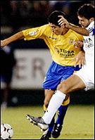 Во втором туре чемпионата Испании мадридский "Реал" на последних минутах ушел от поражения в матче с "Вильярреалом". "Королевский" клуб спас дебютант Антонио Нуньес, который забил ответный гол после розыгрыша углового в исполнении Дэвида Бекхэма. А вот в составе "Вильярреала" отличился бывший нападающий "Монако" Сонни Андерсон, открывший счет всего через минуту после выхода на замену. Мадридский "Реал" играл без нескольких ключевых футболистов. Роберто Карлос, Роналдо и Эстебан Камбиассо уехали с расположение национальных сборных, а Гути еще не оправился от травмы. В итоге в стартовом составе вышли три молодых защитника - Рауль Браво, Павон и Рубен, а Иван Эльгера расположился на месте опорного полузащитника. Эта позиция после продажи в "Челси" Клода Макелеле, стала в мадридском клубе самой проблемной. "Вильярреал", который очень продуктивно в межсезонье поработал на трансферном рынке, очень активно провел стартовые минуты и в самом дебюте создал два острейших момента. Сначала после прострела Хави Вента счет едва не открыл Хосе Мари. А затем с передачи Виктора тот же Хосе Мари с убойной позиции пробил рядом со штангой. Мадридский "Реал" ответил штрафным удар Бекхэма, после которого Зидан из района одиннадцатиметровой отметки головой не попал в створ ворот. На 26-й минуте "Реал" остался без Зидана, который из-за травмы был вынужден покинуть поле. В оставшееся время первого тайма "Вильярреал" владел небольшим преимуществом, но реальных голевых моментов команды не создавали. В начале второго тайма вратарь "Вильярреала" Рейна парировал удар со штрафного Бекхэма. А затем после навеса с угловой отметки того же Бекхэма в штангу пробил Павон. Затем "Реал" вновь упустил отличный шанс открыть счет. Фигу великолепным пасом вывел один на один Сальгадо, но тот пробил в перекладину. Мяч попал в неприкрытому Портильо, но юный форвард неудачно сыграл на добивании. "Вильярреал", в свою очередь, ответил двумя острыми атаками с участием Хосе Мари и Виктора. На 70-й минуте в составе хозяев поля на замену вышел нападающий Сонни Андерсон и едва ли не первым касанием открыл счет. Бразильский форвад, получив длинный пас от Кике Альвареса, ушел от Рубена, вышел на ударную позицию и неотразимо пробил в верхний угол ворот Касилльяса. Главный тренер "Реала" Карлуш Кейруш тут же заменил неудачливого Портильо на молодого Нуньеса, которому суждено было стать героем матча. На 85-й минуте после розыгрыша углового Нуньес головой пробил под перекладину, хотя не обошлось без небольшого рикошета от Арруабаррены. В добавленные арбитром минуты "Реал" получил право на штрафной удар из выгодной позиции, но Дэвид Бекхэм не сумел обмануть голкипера. |