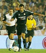 процент брака в передачах, что не свойственно футболистам "Реала". Очень слабо сыграли Зидан, Роналдо и Бекхэм, вокруг которых должна была строиться игра "Реала". В итоге "Валенсия" вполне заслуженно забила два безответных мяча и одержала четвертую победу в сезоне. После пятого тура "Валенсия" вышла на первое место в турнирной таблице, опередив "Депортиво", который неожиданно проиграл "Осасуне", и мадридский "Реал". "Валенсия" сделала ставку на быстрый гол и с первых минут обрушила серию яростных атак на ворота "Реала". Оборона гостей оказалась не готова к такому повороту событий. На 4-й минуте сольный проход по центру совершил Аймар, но пробил рядом со штангой. Спустя минуту по правого флангу прорвался Хорхе Лопес и выполнил прострел во вратарскую. Миста на мгновение опередил Касилльяса и с близкого расстояния отправил мяч в сетку ворот "Реала", забив свой 3-й гол в сезоне. Еще через минуту после массированной атаки Албелда с линии штрафной пробил в сантиметрах от девятки. "Реал" в эти минуты напоминал скромного аутсайдера и даже не переходил на чужую половину поля. Однако на 16-й минуте "Реал" внезапно проснулся и дважды мог сравнять счет. Сначала Луиш Фигу на подступах к штрафной обыграл двух защитников и мощно пробил по воротам. Канисарес отбил мяч перед собой, но Роналдо не успел на добивание. Затем после розыгрыша углового выше всех выпрыгнул Рауль Браво, но Канисарес вытащил мяч из-под перекладины. "Валенсия" ответила великолепной атакой веером, после чего каким-то чудом не забил Аймар. Затем темп в матче резко упал. Игра переместилась в середину поля и обе команды перестали создавать опасные моменты. Лишь за минуту до перерыва Оливейра с острого угла выскочил один на один, но не попал в створ ворот. Во втором тайме "Валенсия" уверенно контролировала мяч и не позволяла "Реалу" ровным счетом ничего. А на 72-й минуте хозяева поля провели острейшую атаку, в результате которой забили второй гол. Сначала защитники "Реала" дважды выносили мяч из пустых ворот, но на третий раз Оливейра с близкого расстояния