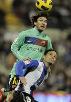 Первый тайм по рисунку оказался предсказуемым. «Барселона» взяла себе мяч, территорию и принялась играть в футбол на половину поля. Естественно, плацдармом выбрали вражескую сторону поля. «Эркулес» тоже не тушевался. Команда Виго плотно закупорилась у своей штрафной и не пускала особенно оппонентов к себе. Те проходили, наносили удары, однако не такие опасные. После экватора тайма хозяева осмелели и начали покалывать «Барсу», смелее шагая вперед, выше прессингуя и жестче играя в отборе. Мужественно отбивались «гераклы», но усталость подкатывала, постоянно держаться на пределе концентрации не удавалось. И ошибка роковая произошла в концовке почти безупречного тайма. Упустили Педро, за что тот их и наказал. Во втором тайме «Эркулес» лица не потерял, но слабая обеспеченность мастерством и серьезная эмоциональная с физиологической измотанность давали о себе знать. Хозяева все меньше создавали трудностей сопернику, который все так же уверенно владел всем, чем только можно владеть «Барселоне». Со стороны «гераклов» все больше стало помарок проскакивать, осечек, ошибок, неточностей...  |