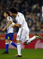 На 20-й минуте все сторонники Мадрида возмущенно заголосили. Это после подачи в штрафную им показалось, что кто-то из «Эспаньола» сыграл рукой. Повторы показали, что момент из ряда «на усмотрение судьи». Ну, не усмотрел он. Ох, и будет же “Marca” разоряться потом по поводу судейства… Касильяс, кстати, к 20-й минуте уже переоделся в цивильную одежду и примостился на трибунах. Будто там и начинал смотреть футбол. Нужно сказать, что «Реал» очень много угловых подавал в дебюте встречи. Извлекать из них выгоду не получалось. Но на это есть и игра. На 24-й минуте состоялся гол. Озил из центра отдал налево на Роналду. Криштиану исполнил проникающий пас на Марсело, который продвинулся к лицевой линии и неожиданно бахнул в ближний угол, пробив Камени. 0:1. Вратарь-то ждал прострела, потому и приоткрыл уголок. Марсело побежал к тренерской скамейке попить водички и был награжден улыбкой Моуринью. Тут же мог удвоить преимущество Адебайор. Он с грохотом прорвался к линии штрафной и бахнул мощно в створ. Камени в броске отразил выстрел. Вообще, «Реал» смотрелся очень симпатично в меньшинстве. Словно и не было того удаления. Так здорово двигалась команда. Давно не выбирался в атаку «Эспаньол». Исправил этот недочет на 31-й минуте. Кальехон навязал борьбу защитникам и добился аута – не более. Однако, забив, и «Реал» чуть успокоился, стал вести боле экономичную игру, понимая, что каждому придется отрабатывать «за того парня», а усталость – вещь такая. Ты можешь летать как молодой орел, а потом внезапно почувствовать, что сил больше нет.