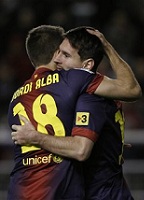 Начало осталось за хозяевами, которые сразу же заработали угловой, разыграли его, и даже последовал удар с подбора. Пусть и неточный. Каталонцы, конечно, так это оставить не смогли и традиционно поприжали противника к его штрафной, но до удара дойти им не позволяли. Более того, на пятой минуте Карлоса в контратаке сбил Альба и получил карточку, а "Райо" заработал угловой. Не зря говорил Виланова о сложности выезда. У себя дома эта команда никого не боится. Команда приличными силами шла вперед, немного нервничала, но соблюдала тренерскую установку и пыталась завершать каждый поход вперед. Во всяком случае, не давала "Барсе" просто взять мяч и гонять его в центре поля. Каталонцам приходилось и без мяча подвигаться. На 9-й минуте даже прессингом отобрали хозяева мяч у "Барсы" перед ее же штрафной. Карильо вошел в нее и упал в борьбе с защитником, однако требуемого пенальти не получил. Фол был до штрафной, однако даже простого стандарта не получил "Райо". Это не помешало ему в следующей атаке прорваться справа и заработать корнер. Ничего с него не извлекли, но впереди побегали. Даже варианты в позиционных атаках искали перед воротами. При потере высоко коллективно прессинговали, не давали развернуться. Хотя на 15-й минуте все же упустили веерную атаку. Последовал пас направо в штрафную, но четко на скорости сыграл защитник, блокируя прострел. И "Райо" продолжал гонять мяч, а при потерях быстро жестко прессинговать. Месси однако сумел протиснуться к штрафной слева. Он ускорился мимо защитника и пробил в ближнюю девятку, не попав. Не успели хозяева подумать о новой атаке, как "Барса" все же забила. Проникающий пас Фабрегаса разрезал защиту, а Вилья вколотил мяч в сетку. 0:1. Все-таки класс есть класс.