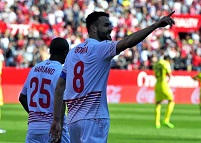 Центральный матч тура уже сейчас можно назвать его украшением. По всем показателям – непредсказуемость сюжета, обилие и красота голов, эмоции и страсть, которые били ключом на газоне "Рамон Санчес Писхуан". Хозяева открыли счет в середине первого тайма, когда Гамейро сделал все, для того, чтобы отличился Иборра. На выручку «Вильярреалу» пришел вырастающий постепенно в действительно классного форварда Бакамбю. Как и в недавнем матче с «Байером», француз превратил два момента в два гола, в обоих случаях мощно и точно укладывая мяч в углы ворот. Однако «Севилья» явила недюжинную волю к победе. В дебюте второго тайма своей атакующей активностью хозяева вынудили Руиса отправить мяч в свои ворота. Витор пытался помешать прострелу Коноплянки дойти до Гамейро, а получилось как всегда. При равном счете пошла обоюдоострая игра, которую ещё острее сделал феноменальный гол Коноплянки. Евгений засадил мяч в «девятку» метров с 30, посадив Ареолу зрителем в кинотеатр на линии ворот. Банега добавил перчинки, оставив партнеров вдесятером за десять минут до конца. Андалусийцы дважды выносили мяч из пустых ворот, а уже в компенсированное время Гамейро убежал к воротам. Сам не забил...