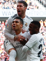 Набирает ход «королевский клуб» - пятая кряду победа над главным конкурентом и принципиальным соперником. Команде Солари удалось забить быстрый гол – Каземиро подсуетился на угловом на отскоке и красиво забил в падении через себя. Паритет хозяева вернули оперативно – Гризманн убежал почти с середины поля, закатив мяч в домик Куртуа. Очень по-разному могла бы сложиться эта жесткая бескомпромиссная игра, не зацепи Хименес перед перерывом Винисиуса. Рамос с пенальти переиграл Облака, обеспечив «Реалу» преимущество на табло и в голове. После перерыва «матрасники» добавили, забили не засчитанный из-за офсайда гол, не смогли дожать и получили в итоге в контратаке третий. Сменивший Винисиуса Бэйл мастерски реализовал пас Модрича. Даже в полном составе хозяевам было бы тяжело вырвать хотя бы ничью, а они вскоре остались вдесятером – второе предупреждение отхватил Томас. На этом всё было кончено. «Реал» спокойно довел дело до победы, поднявшись на второе место. «Барселона» впереди на пять очков при игре в запасе, а для «Атлетико» это второе кряду поражение и три гола за матч при 14 в 22 предыдущих. Есть о чем подумать Симеоне перед Лигой чемпионов.